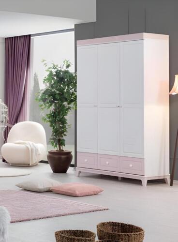 Sieviešu skapis Koka skapis Skapja koka Dažādās krāsās Guzma Mūsdienīgi guztavāna ir praktisks un mūsdienīgi dizainēts skapis, kas ideāli piemērots sieviešu apģērbu un aksesuāru glabāšanai. Ar izmēru apmēram 139 x 54 x 219 cm, tas nodrošina pietiekamu krājvietu un sakārtotību jūsu mantām. Skapī ir trīs dažāda lieluma nodalījumi, kas palīdz saglabāt apģērbu kārtībā un viegli sasniedzamu. Baltā-rozā krāsojums padara šo skapi elegantu un stilīgu pievienotu jebkurā mūsdienu interjerā.