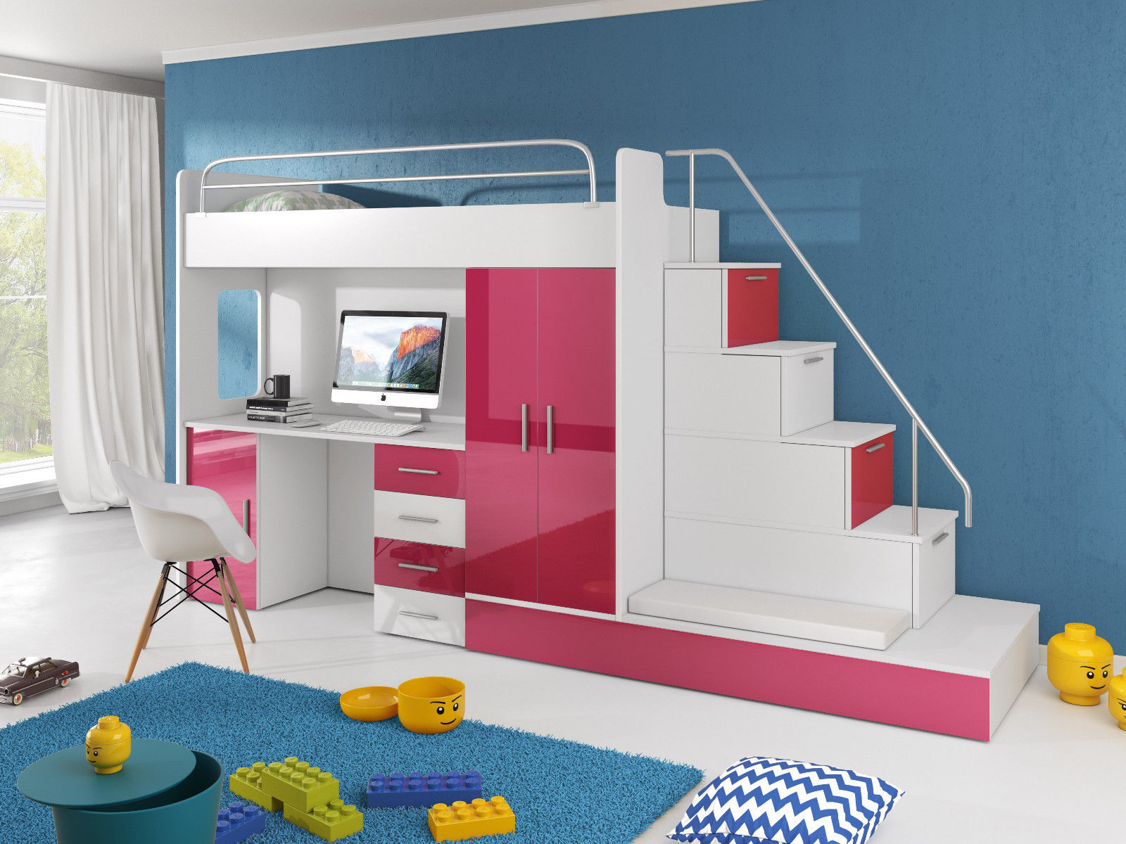 Šis komplekts ne tikai nodrošinās Jūsu jaunākajam ērtu un drošu aizmigu, bet arī ļaus viņam saglabāt kārtību savā istabā. Divstāvu gulta ietaupīs vietu, turklāt skapis un rakstāmgalds nodrošinās pietiekami daudz uzglabāšanas vietas gan apģērbam, gan mācību materiāliem. Izmantotās materiālu kvalitāte un izturība garantē, ka šis komplekts kalpos Jums ilgstoši, kas ir ideāls risinājums patinēju istabai vai viesistabai. Būt jau par daļu no šī modernā komplekta un iekārtojiet jaunietes istabu pēc mūsdienīgiem standartiem un ērtības!