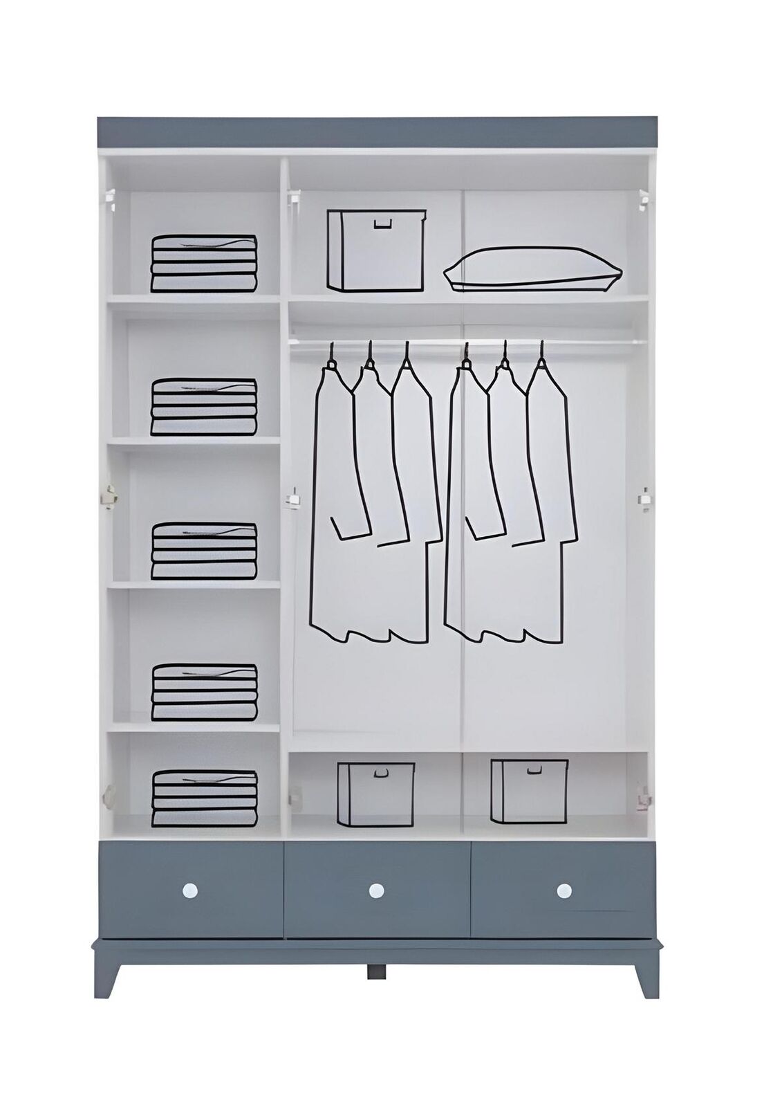 Pilna krāsu bērnu istabas komplekts Skapis Komeja Gaišs 2 gab. Jaunums ir lielisks komplekts, kas ietver skapi un komodi, lai pilnveidotu bērnu istabu. Skapī ir apmēri apmēram 137 x 53 x 206 cm, savukārt komode - 90 x 45 x 87 cm. Šis komplekts ir izgatavots no koka, kas nodrošina ilgstošu izturību un kvalitāti. Balta-pelēkā krāsa piešķir mūsdienīgu un mājīgu izskatu. Ar šo komplektu Jūs iegūsiet praktisku un funkcionālu risinājumu bērnu istabai, kur varēsiet saglabāt mantas kārtībā un organizēti.