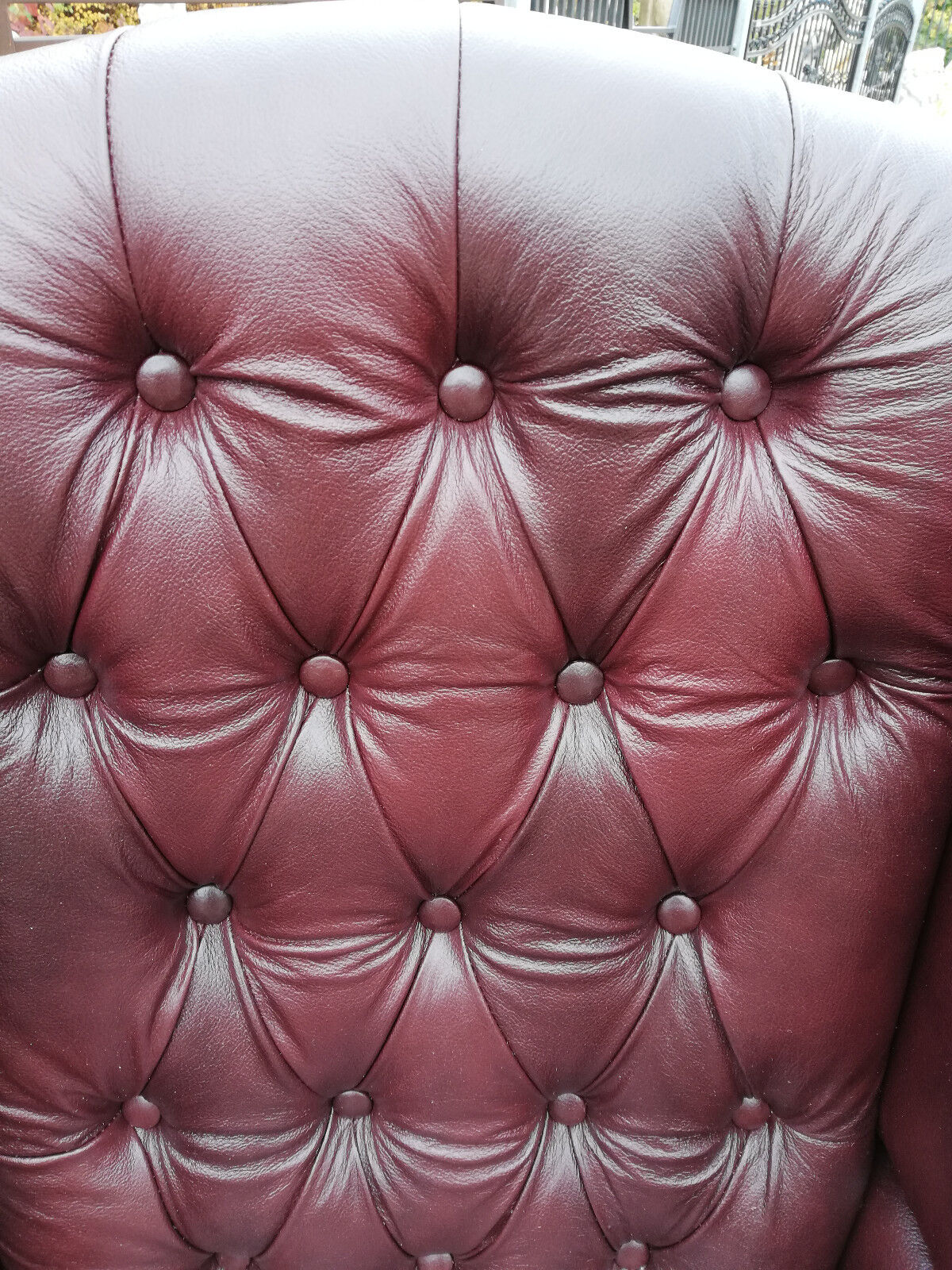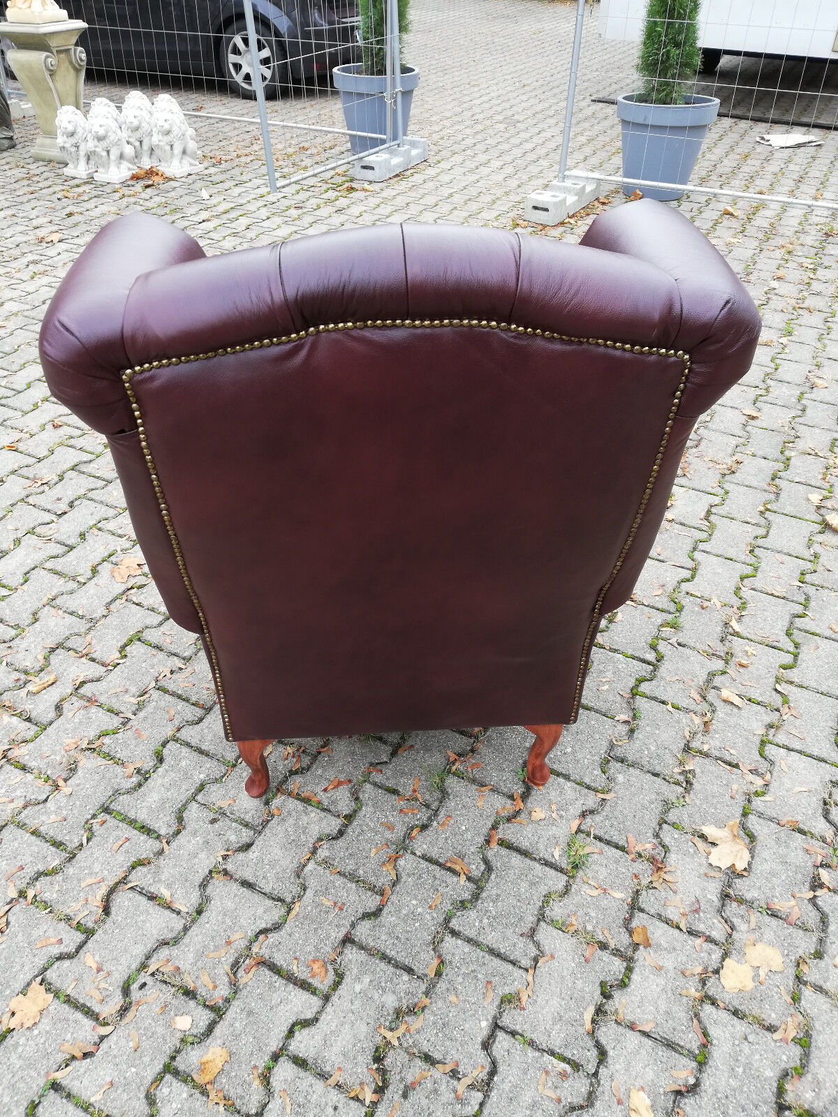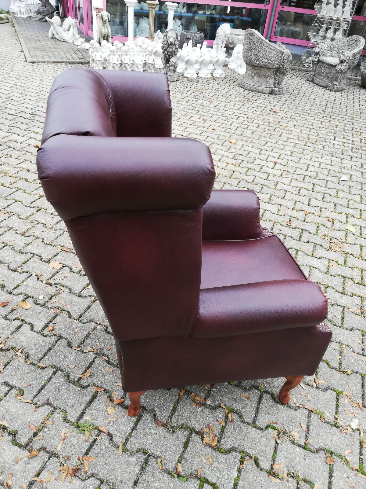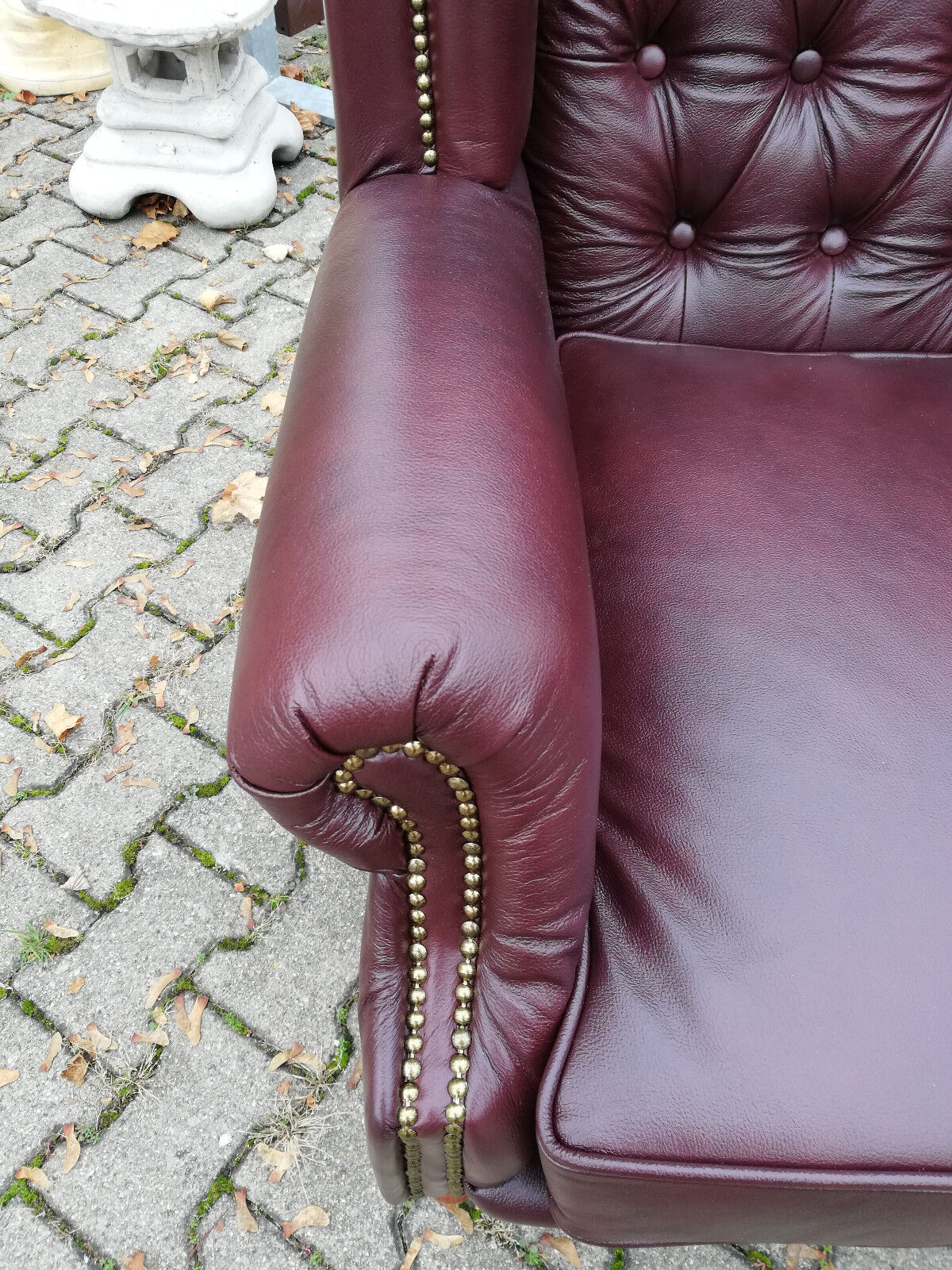 Krēsls Ausu krēsls Chestefield krēsls Sēdeklis Polsteris Dīvāns Atpūtas krēsls Īsta āda Jauns!