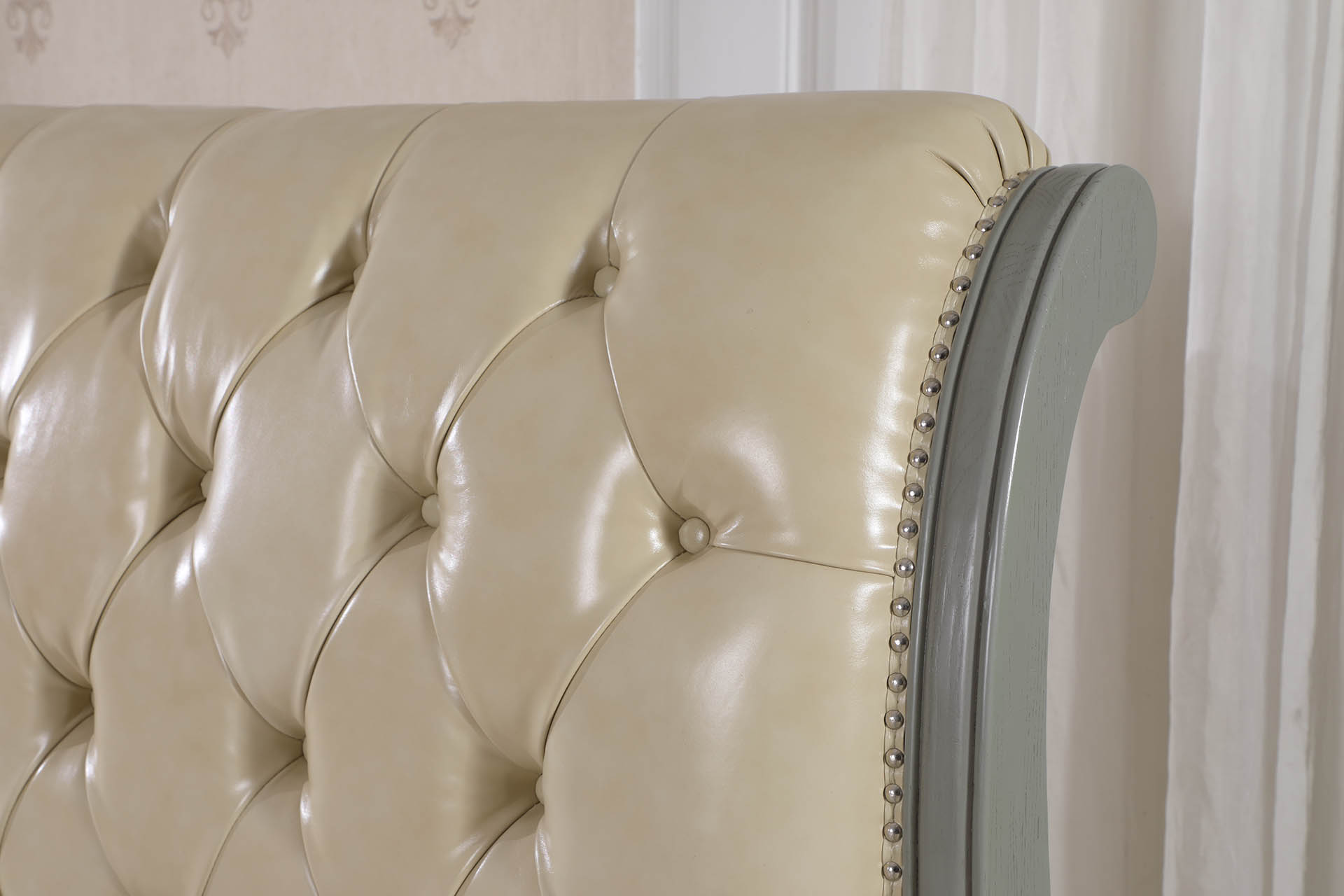 Gulta Polster dizains luksusa koka divguļamā gultām viesnīcai laulību guļamistabas ādā pelēka.