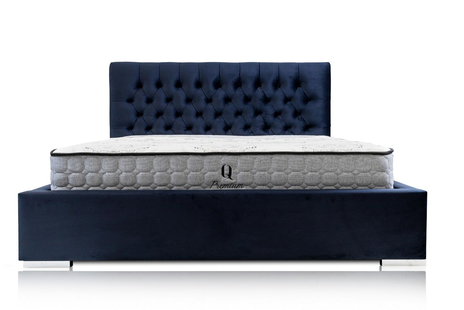 Gulta Zila Moderna dizaina Auduma pārklāts Guļamistaba Divguļamā gulta Koks Elegants Jaunums