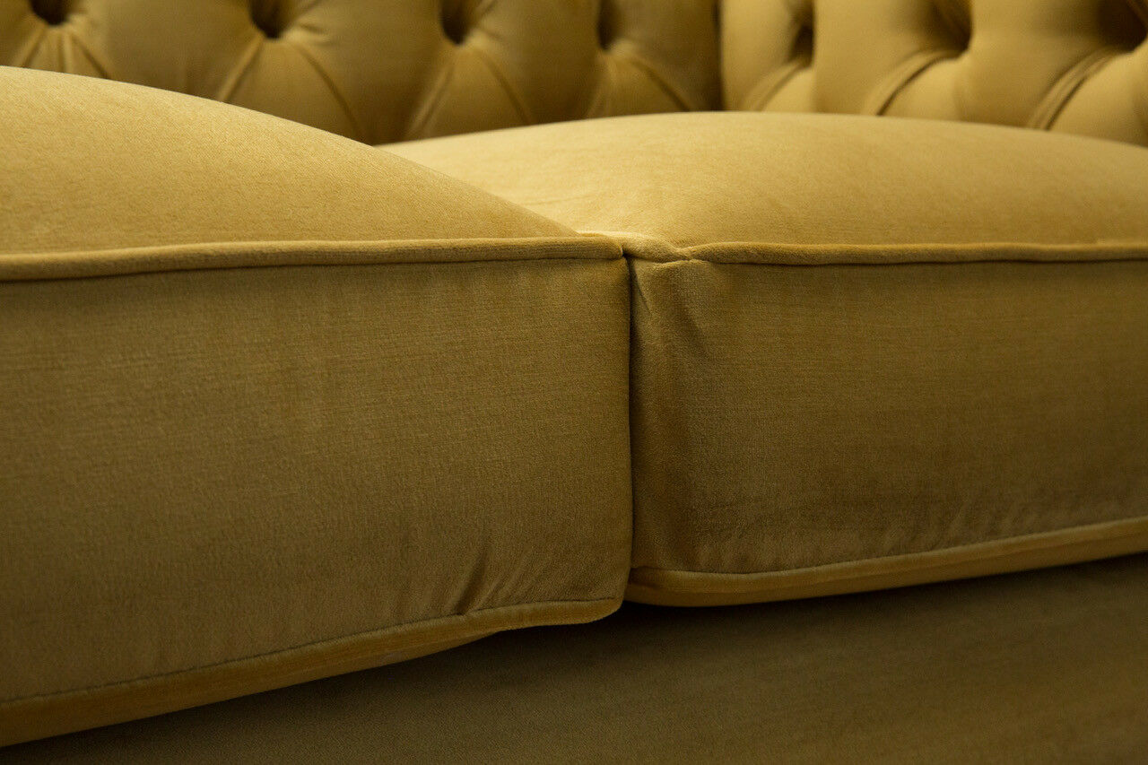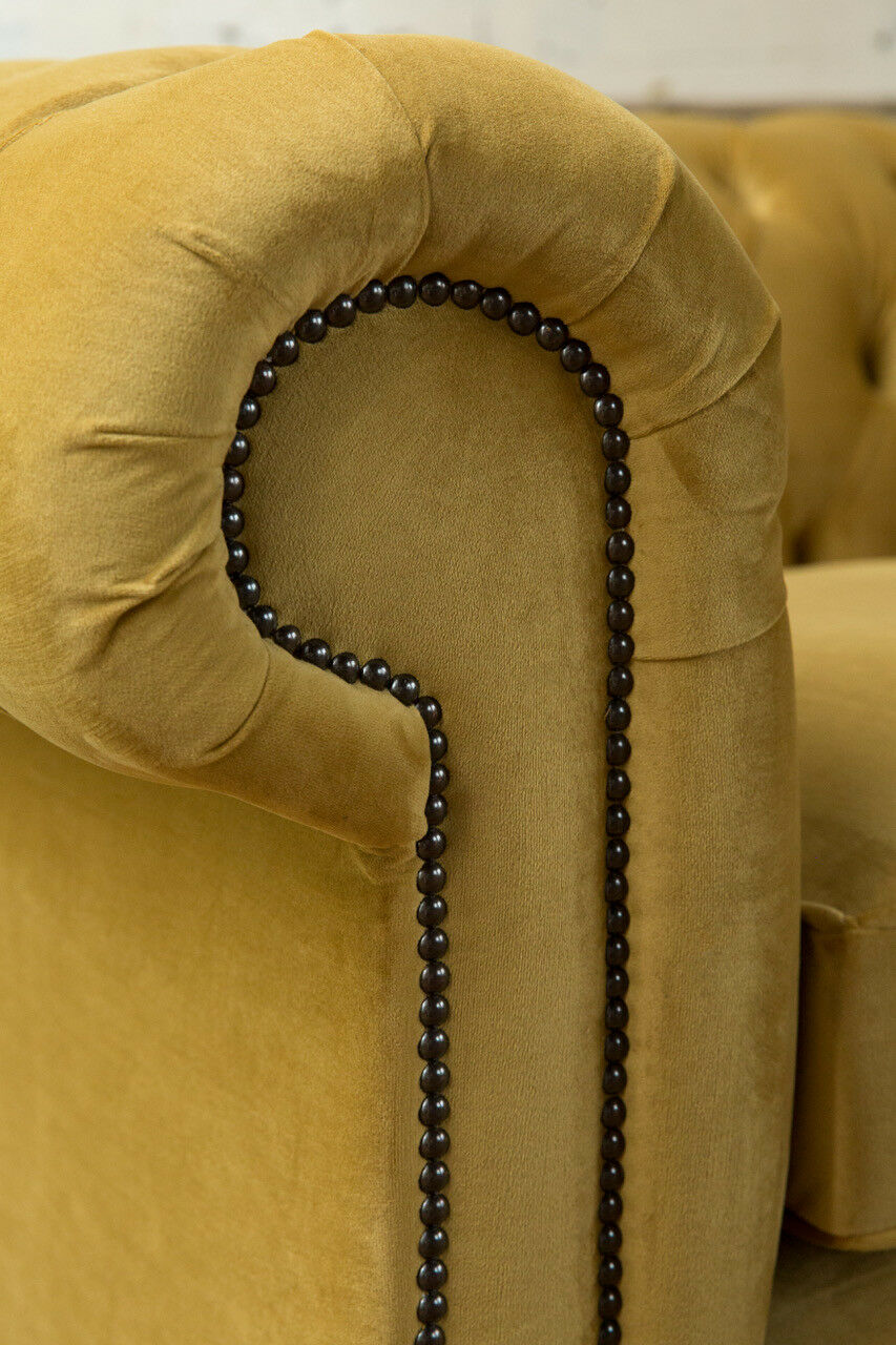 Česterfīldas dīvāns 2 sēdvietām Polster Couchen Couch Dreisitzer Dzeltenās krāsas dīvāni samts Jauni