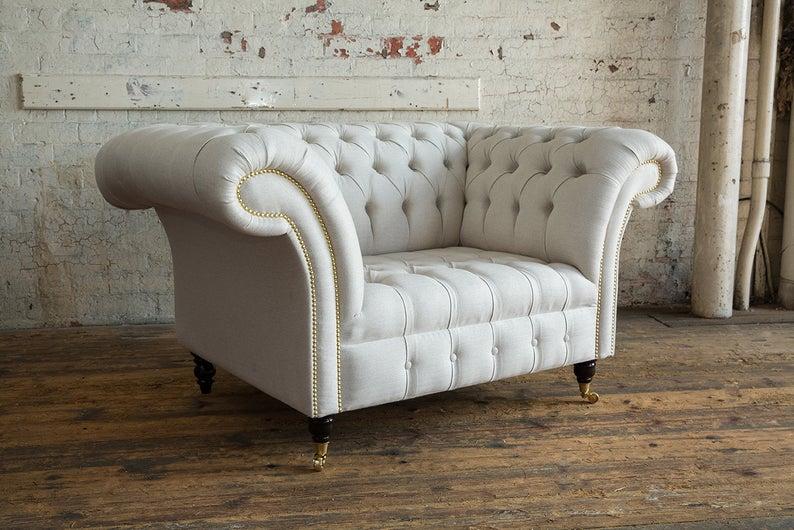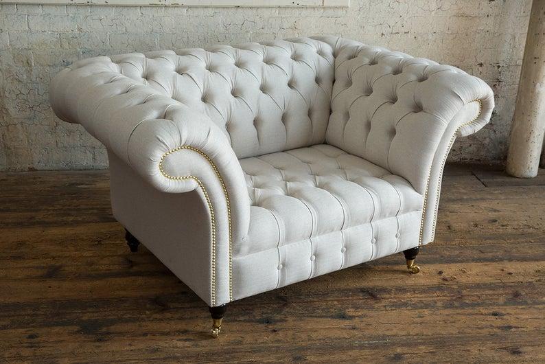 Chesterfield dizaina dīvāns krēsla dīvāns apdare luksusa tekstila dīvāns 1 sēdvietas #112 ir izcilas kvalitātes un elegances savienojums. Šis dīvāns ir aprīkots ar Premium mākslīgo ādu un īstu koka iekšējo rāmi, kas nodrošina gan izturību, gan komfortu. Izmēri apm. 110cm x 90cm x 80cm un sēdēšanas augstums apm. 44cm nodrošina ērtu un ergonomisku sēdēšanas pieredzi. Pieejama krāsu izvēle un iespēja iegādāties dīvānu ar kristāla akmeņiem, lai radītu vēl vairāk mājoklim raksturīgas elegances.