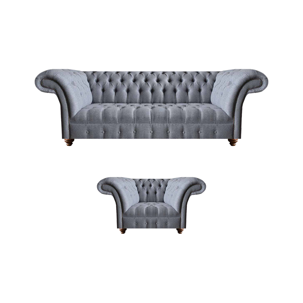Chesterfield dizainera pelēkas mīkstajām mēbelēm Modernas tekstilcouches 2 daļās