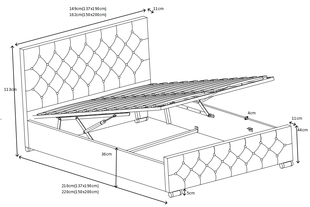 Gultas platība 140 x 200 cm (Ārējie izmēri 140 x 200 cm)