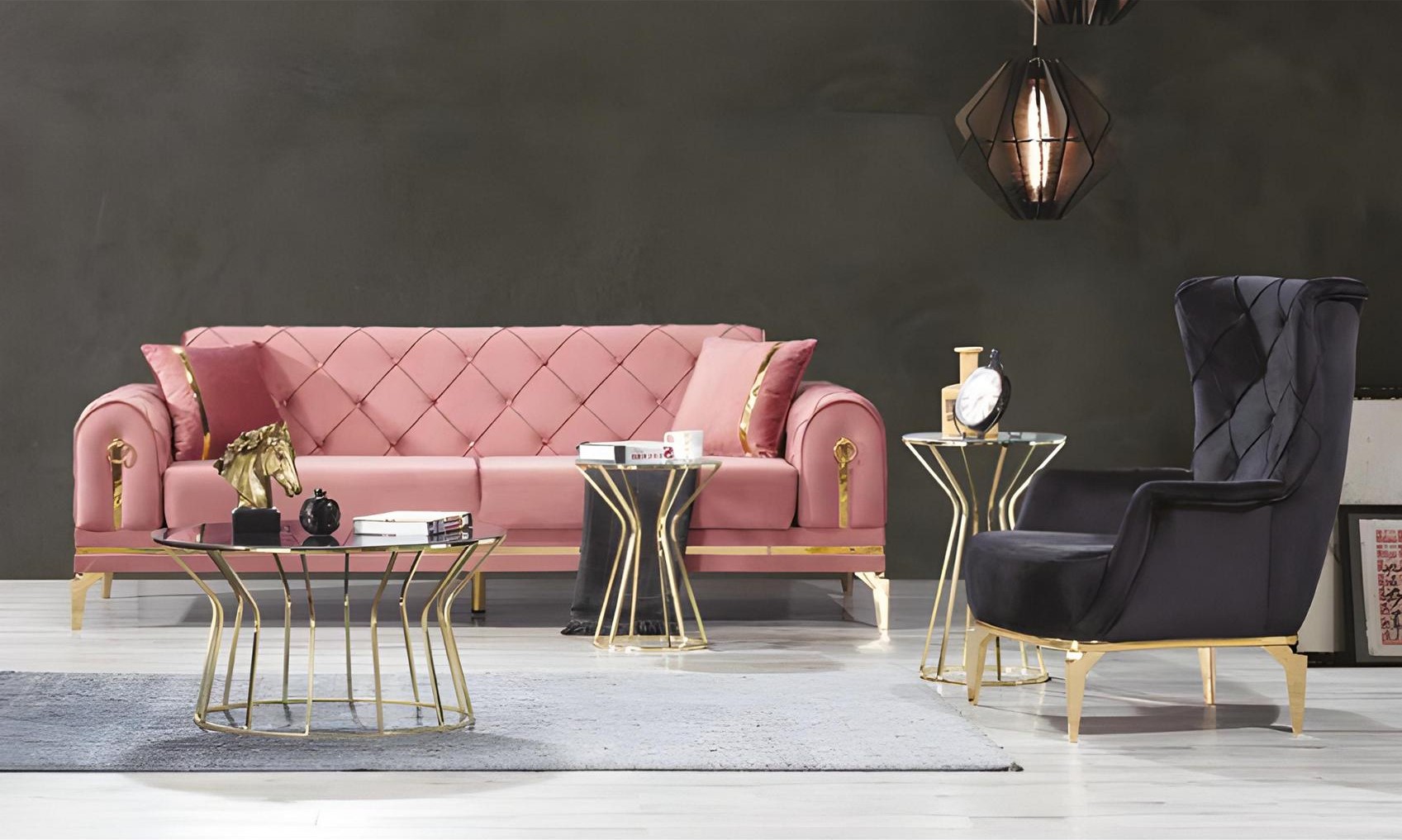 Mūsdienīgs polsterēts dīvāns Luksusa trīsvietīgais ir izcilas kvalitātes mēbeļu gabals, kas izceļas ar savu eleganto un moderno dizainu. Šis Chesterfield roze nerūsējošā tērauda dīvāns piedāvā pietiekami daudz vietas relaksējošiem mirkļiem, ar izmēriem apmēram 230 x 90 x 85 cm. Sēdvietas augstums 44 cm un sēdvietas dziļums 58 cm garantē ērtu sēdēšanu ikvienam. Izgatavots no augstas kvalitātes koka, tekstila un metāla kombinācijas, šis dīvāns ne tikai izturīgs, bet arī stilīgs, sniedzot telpai greznu un mūsdienīgu atmosfēru. Šis ir ideāls ieguldījums mājās vai birojā, nodrošinot gan stilu, gan komfortu.