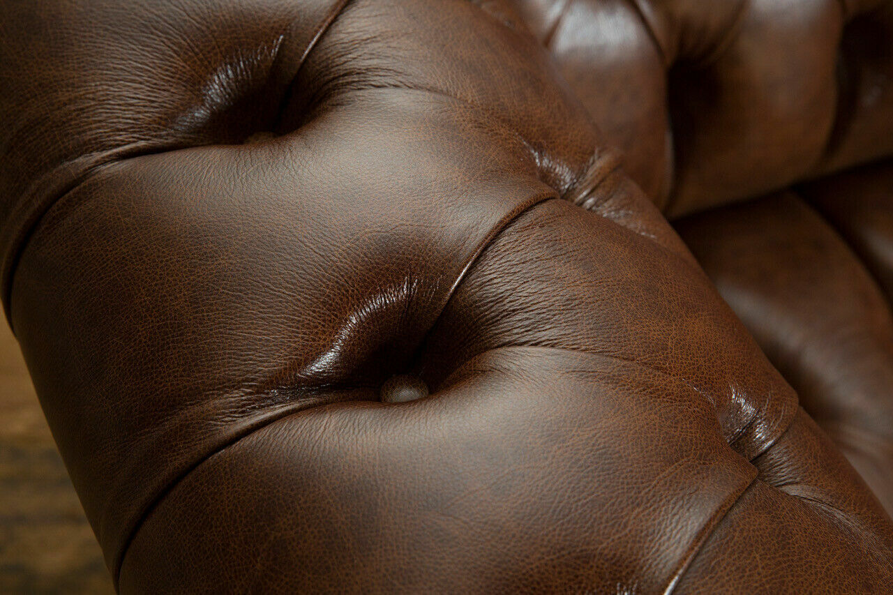 Chesterfield Brown dīvāns ar 4 sēdvietām un polsterējumu, dīvāns sērijas dīvāns ar 265 cm garu.