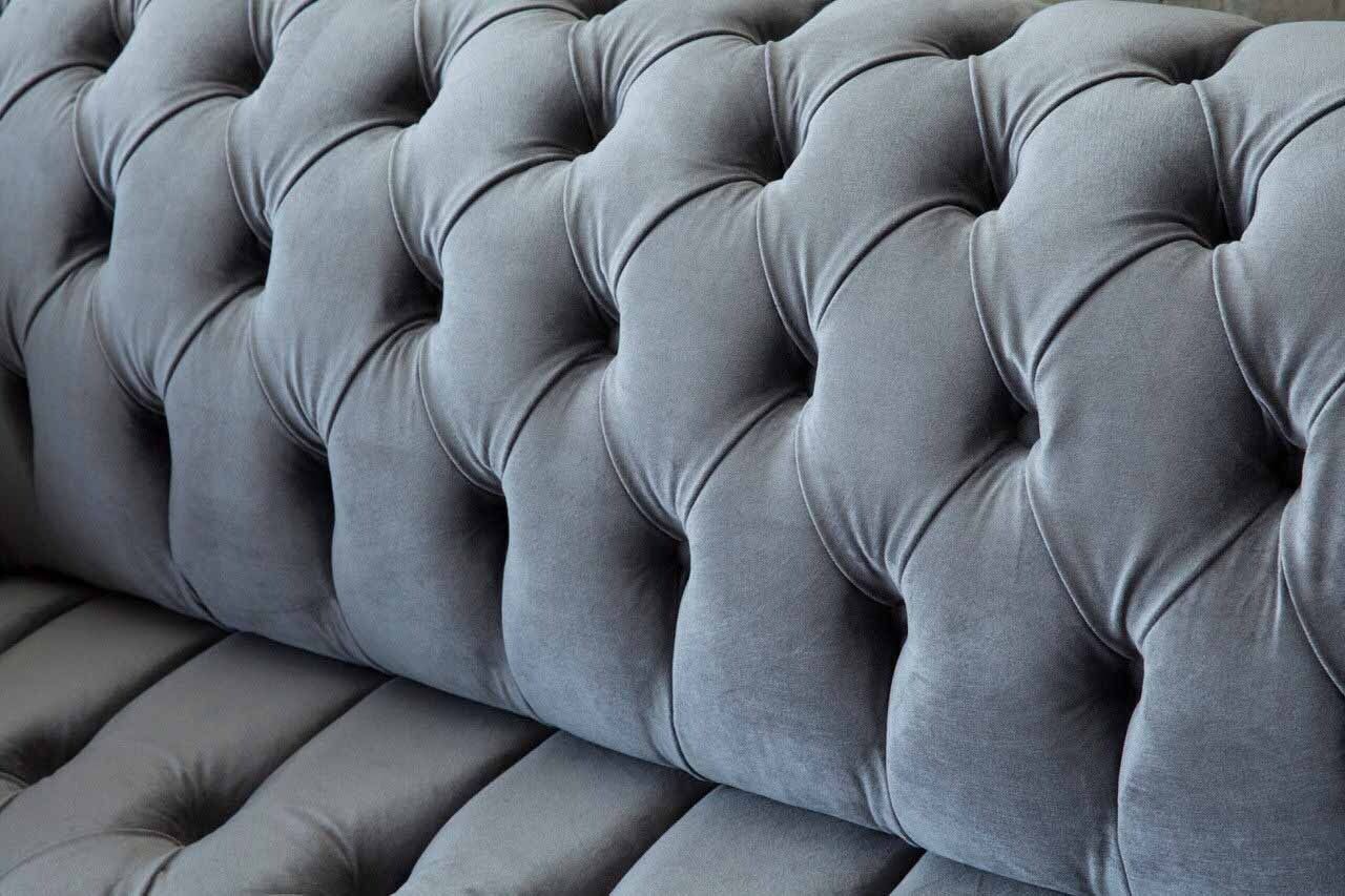 Česterfīldas sofa 3-vietīgā luksusa dīvāns. Dzīvojamā istaba Dīvāni Pelēka auduma dīvāns