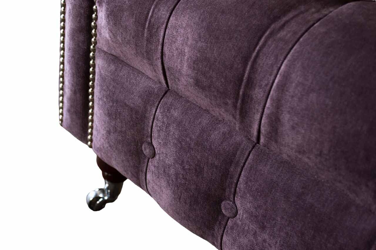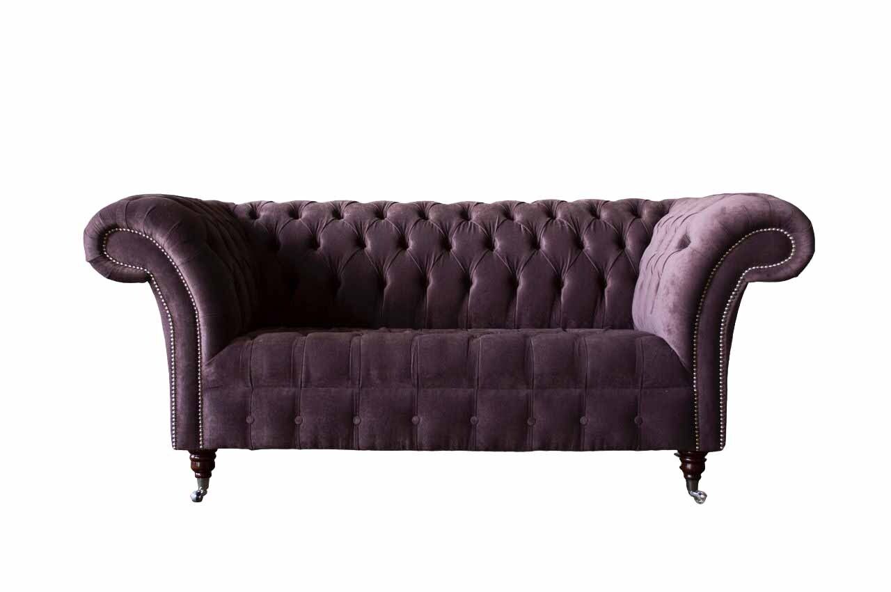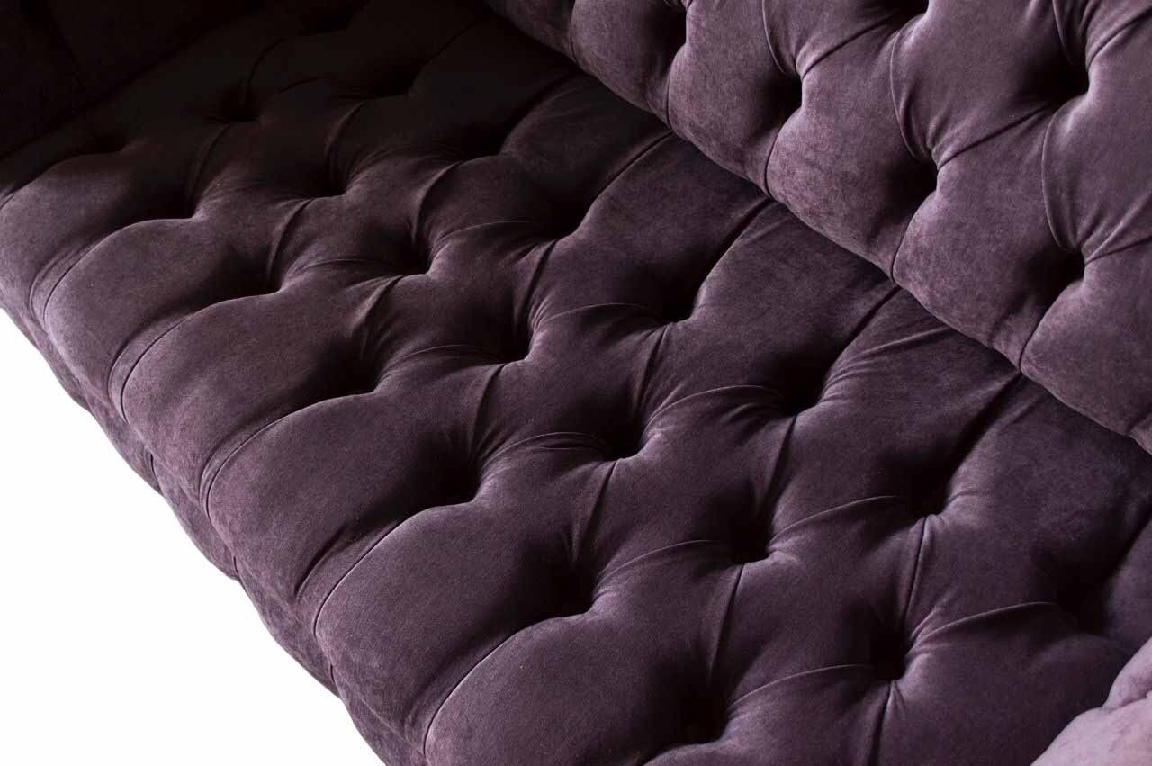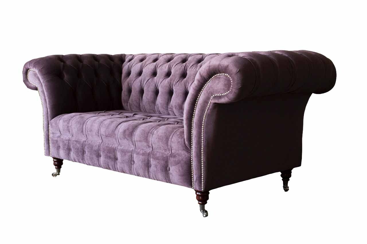 Chesterfield dīvāns ar lillā polsterējumu, tekstilmateriālu, divvietīgs, jauns.