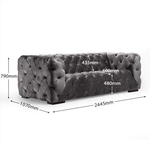 Peleks "Chesterfield" trijos vietu dīvāns ir ideāls gan ikdienas lietošanai, gan viesu uzņemšanai. Ar tā izmēriem apm. 244,5 cm garumā, 79 cm augstumā un 107 cm dziļumā, tas ir piemērots lielām un mazām telpām. Jums ir iespēja izvēlēties no vairākiem citiem izmēriem, lai precīzi atbilstu jūsu vajadzībām. Krāsas un apdari ir brīvi izvēlējami, tādējādi pielāgojot dīvānu savam personīgajam stilam un interjeram.