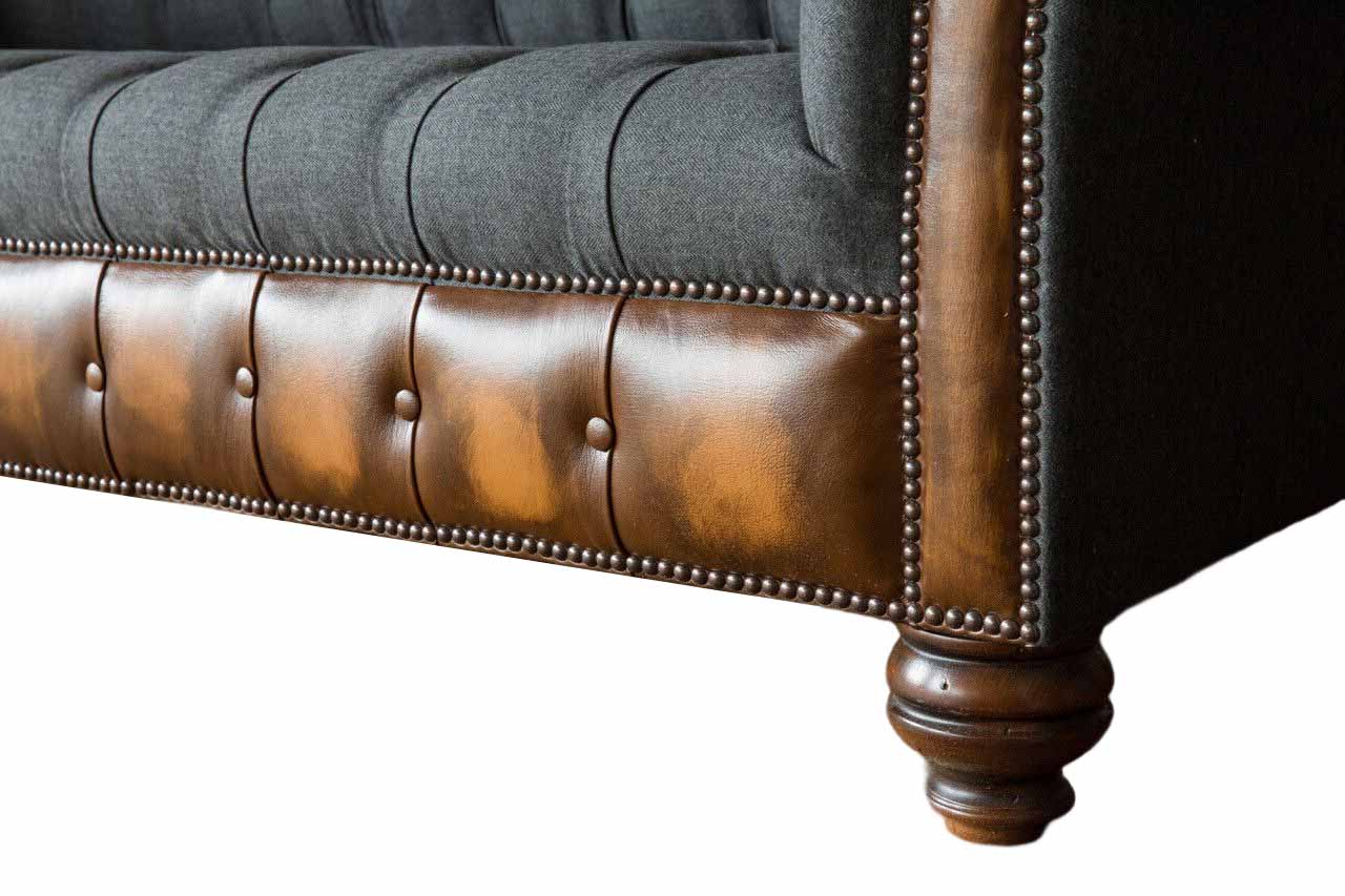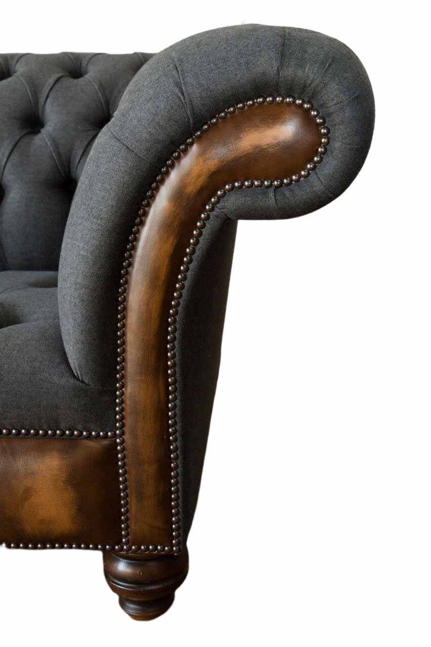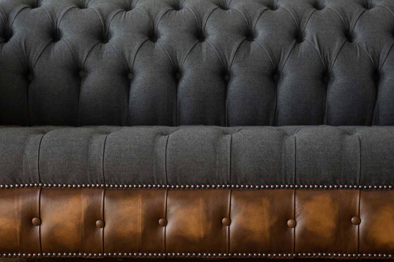 Dizainas Melna sofa 3-vietīga Chesterfield auduma dīvāns Dīvāns Polster New