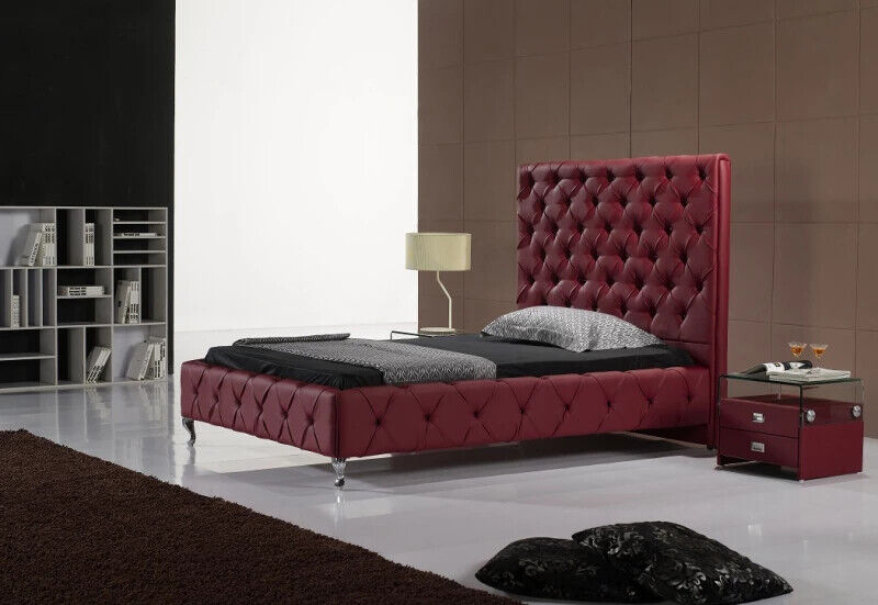 Dizainera gulta Chesterfield ādas viesu gulta luksusa divvietīgā guļamistabā