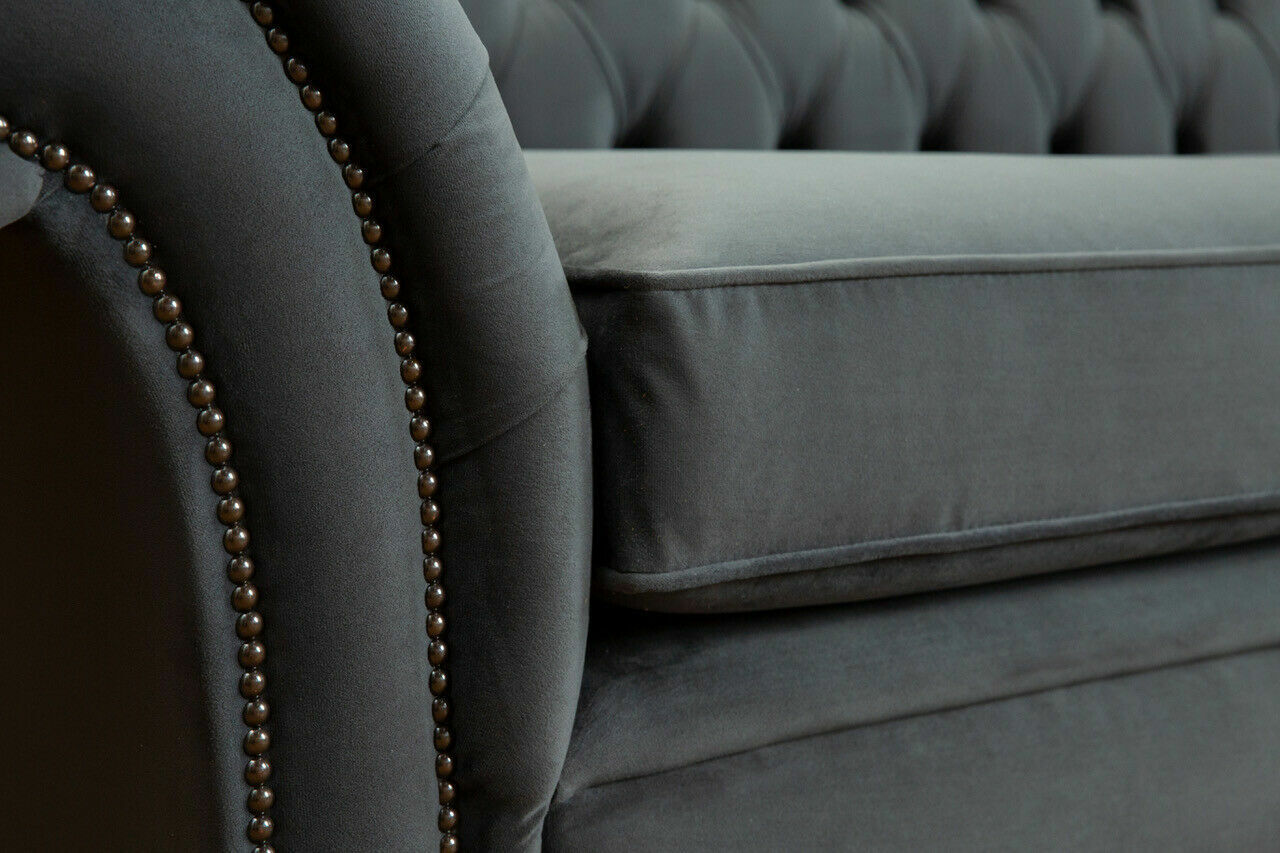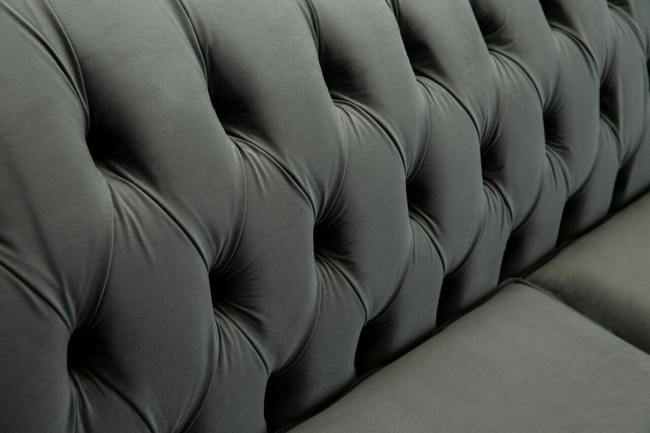 Lielā gulta 4 sēdvietu dīvāns Chesterfield mēbeļu komplekts auduma tekstila jauns pelēks ir elegants un stilīgs mēbeļu komplekts, kas piešķirs jūsu telpai gan komfortu, gan mūsdienīgu dizainu. Šis dīvāns ar savu moderno pelēko krāsu un ievērojamajiem izmēriem, 240 cm garumā, 97 cm augstumā un 109 cm dziļumā, nodrošina sēdvietu komfortu. Ar 4-vietīgo dīvānu vari baudīt relaksējošus mirkļus kopā ar ģimeni vai draugiem.