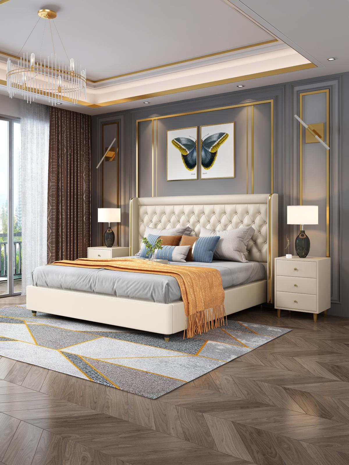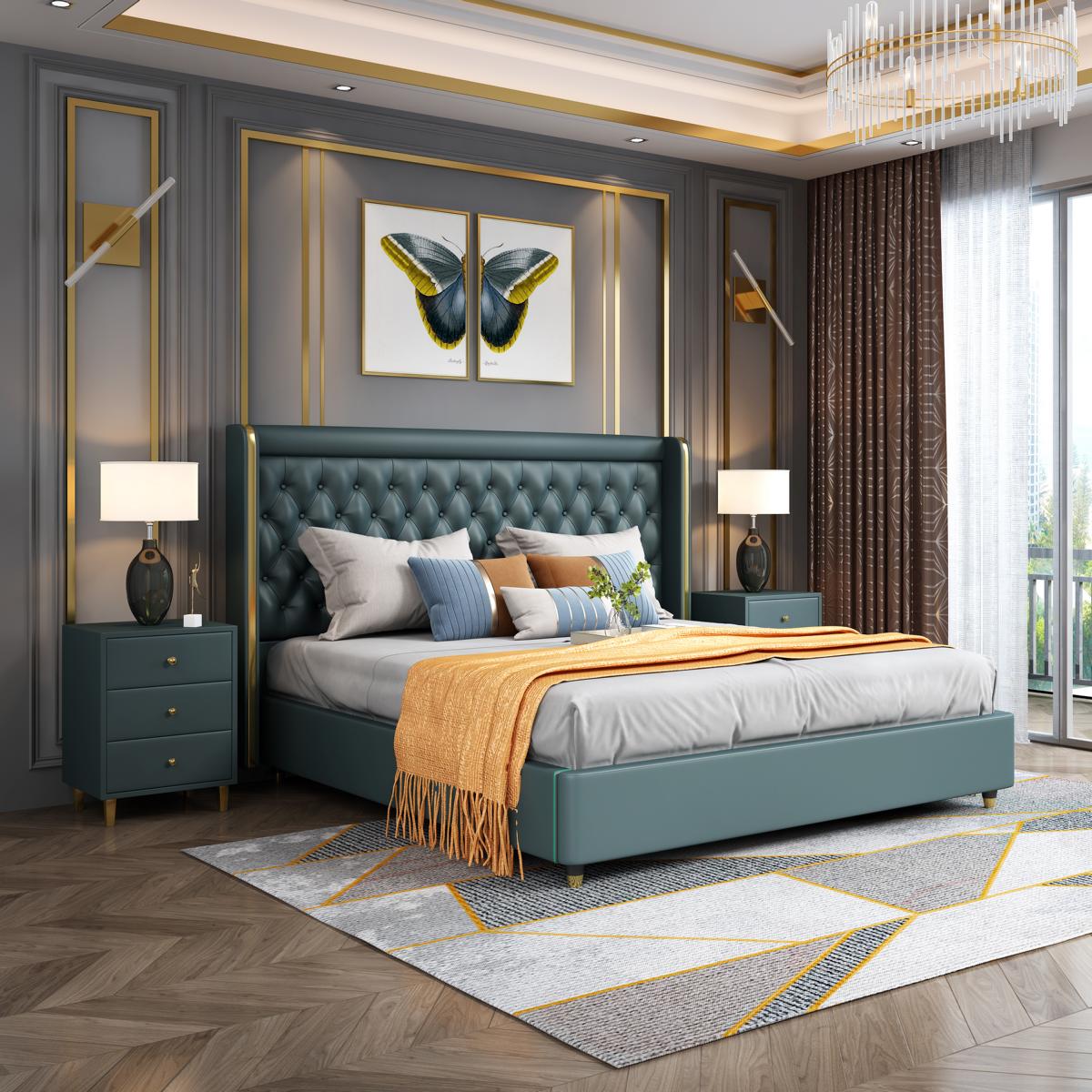 Guļamistabas gulta naktslampas 3 gab. komplekts dizains dekora luksusa gultas ādas