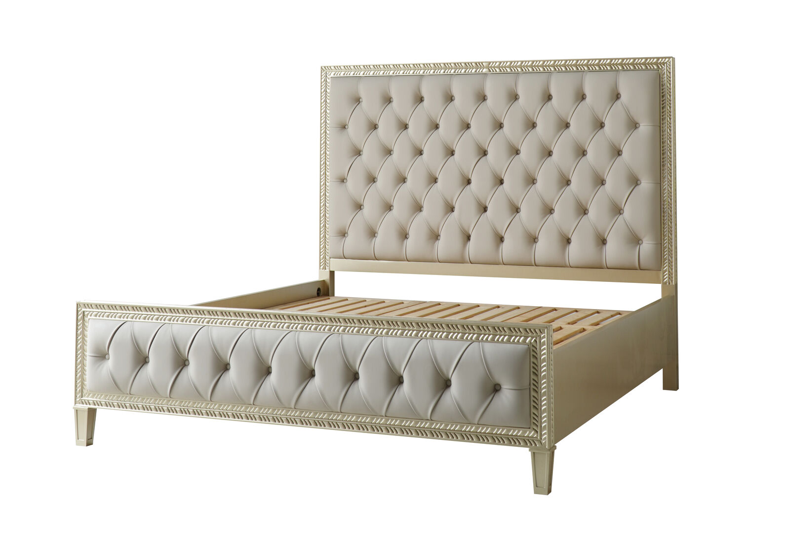 Šī krāšņā gulta ir izgatavota no augstas kvalitātes koka materiāla, nodrošinot gan ilgstošu izturību, gan eleganci jebkurā interjerā. Tās mūsdienīgais dizains un kvalitatīvais audums padarīs jūsu guļamistabu par patiesu mājīgu oāzi. Izmantojiet šo gultu, lai radītu greznu un mierpilnu vidi, kas iepriecinās gan jūs, gan jūsu viesus.