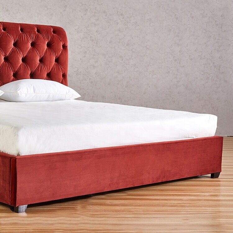 Karaliskās sarkanās krāsas guļamistabas Česterfīlda divguļamā gulta ar polsterējumu luksusa dizainam.