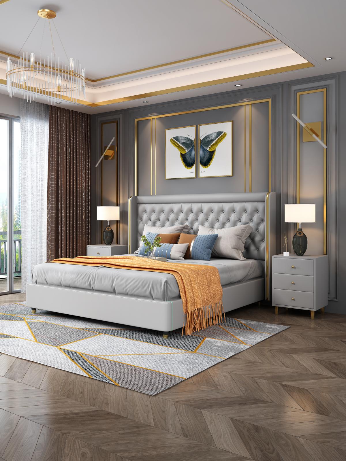Klasiskā gulta divguļamā gulta gultas koka dekors lauku mājas stilā īsta koka