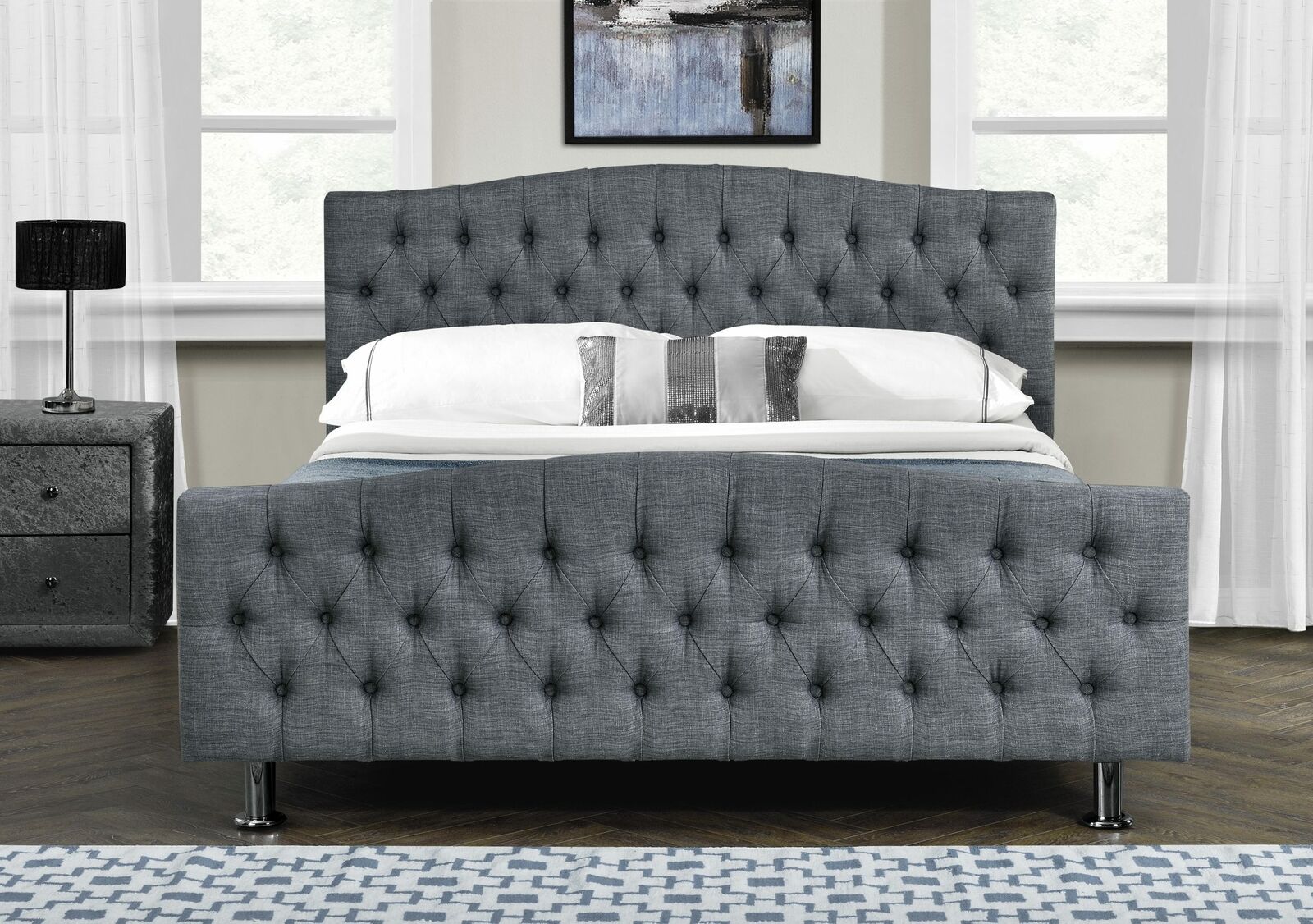 Guļamistabas dizaina Chesterfield pelēks divguļamais gults Izsmalcināti gultu vai naktsmēbeļu komplekti