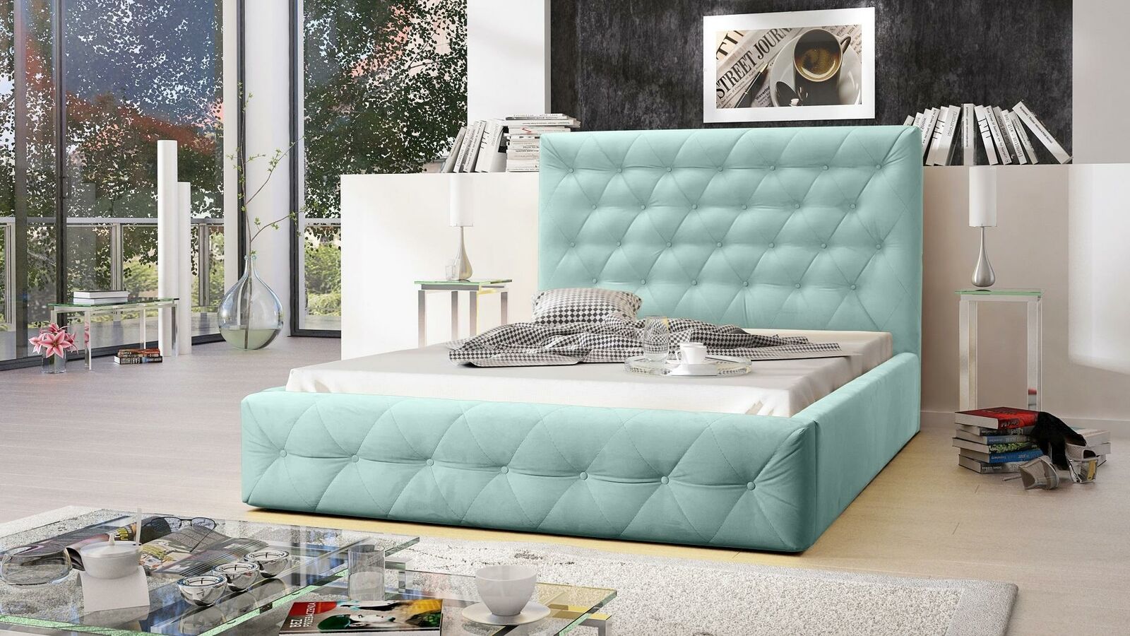 ModernWoodBed, dizainera mēbeles, eleganta guļamistaba, divguļamā gulta, jaunas mēbeles