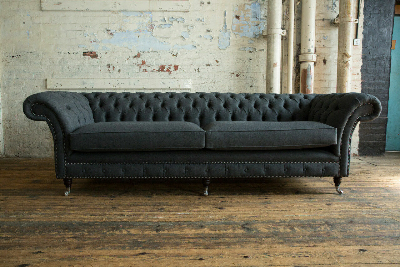 Oriģinālais Chesterfield tekstila ādas dīvāns ar lielu sēdvieta pelēka krāsā, 265 cm ir grezns un izsmalcināts mēbeles elements jūsu mājai. Šis dīvāns ir 4-vietīgs ar izmēriem apmēram 265 cm garš, 79 cm augsts un 98 cm dziļš, nokrāsots pelēkā krāsā, kas ļauj to viegli iederēties jebkurā interjerā. Sēdvietas augstums ir apmēram 42 cm, bet sēdvietas dziļums - apmēram 64 cm, nodrošinot ērtu un relaksējošu sēdēšanas pieredzi. Materiāls - tekstils - ir izturīgs un viegli kopjams, nodrošinot, ka dīvāns kalpo jums ilgu laiku.