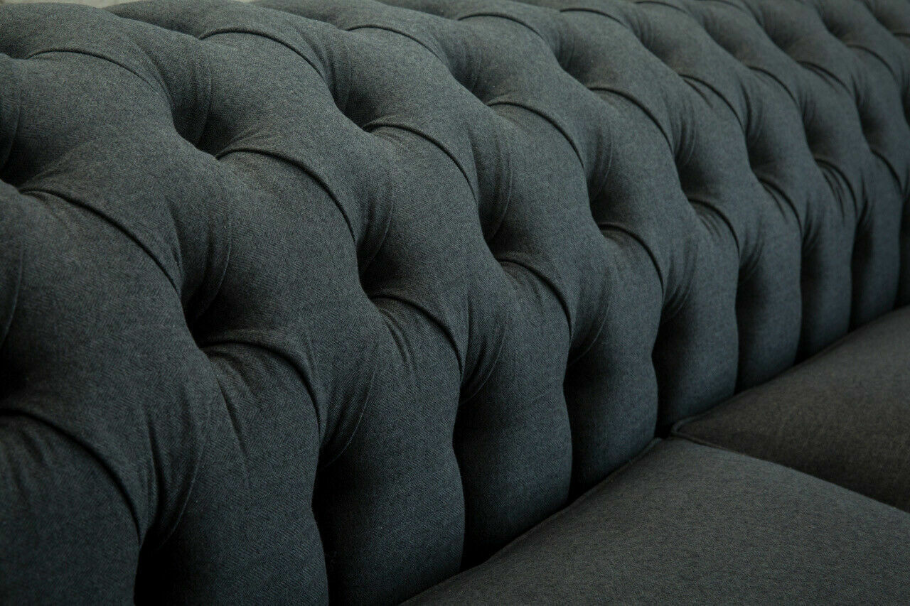 Oriģinālais Chesterfield tekstila ādas dīvāns ar lielu sēdvieta pelēka krāsā, 265 cm.