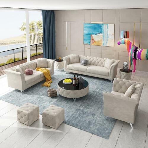 Chesterfield komplekts 8 gab. komplekts dīvāns polster garnitūra galdiņš galda dīvāns ir izsmalcināts un kvalitatīvs mēbeļu komplekts, kas iekļauj visu nepieciešamo, lai radītu eleganci un komfortu jūsu telpā. Dīvānu **sēdvietu skaits svārstās no 1 līdz 3**, atkarībā no telpas izmēra un vajadzībām. Mēbeļu apdare ar **Premium ādas šķiedru audumu (70% āda / 30% poliesters)** nodrošina gan izturību, gan mīkstumu. Šis komplekts ietver arī **divus blakus galdiņus, kafijas galdiņu un divus pufīšus**, piedāvājot dažādas iespējas jūsu mājas iekārtojumam.