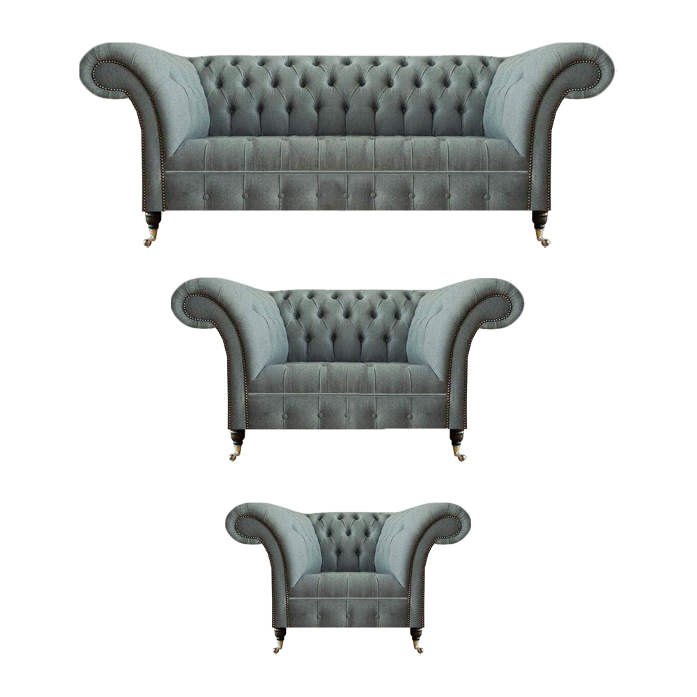 Chesterfield Pelēka Luksusa Dīvāngarnitūra 3 daļas Moderna Viesistaba Iekārtojums