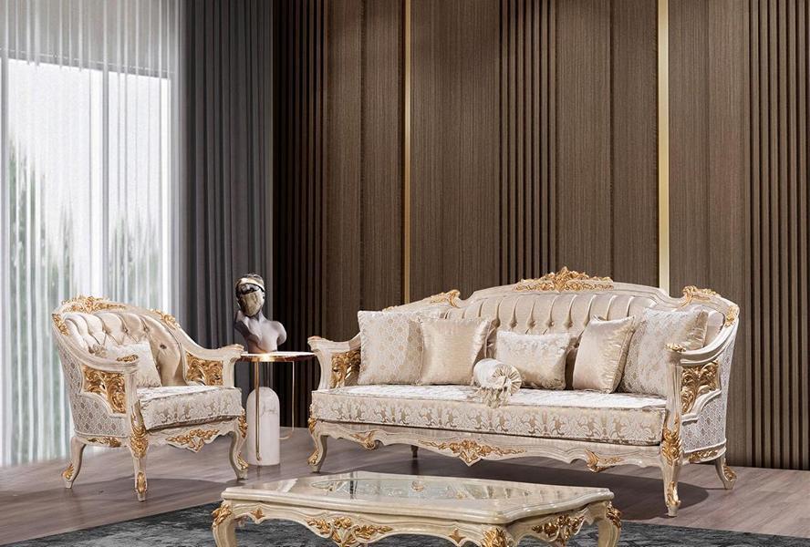 Šis luksusa dīvānu komplekts ir izgatavots no augstas kvalitātes koka un tekstila materiāla, nodrošinot ilgmūžību un izturību. Ar dizainera grupas sastāvu, komplektā iekļautie dīvāni un krēsli piedāvā plašas iespējas mēbeļu izkārtojumam un lietošanai. Vai nu izbaudot relaksējošas brīvdienas ar ģimeni, vai uzņemot viesus, šis dīvānu komplekts būs gan praktisks, gan grezns papildinājums jūsu mājas interjeram.