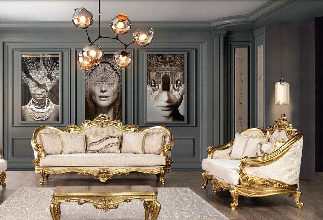 Luxus dīvāngarnitūra 3+3 sēdvietu krēsla dīvāni komplekts audums Baroka sēdvietu grupa garnitūra
