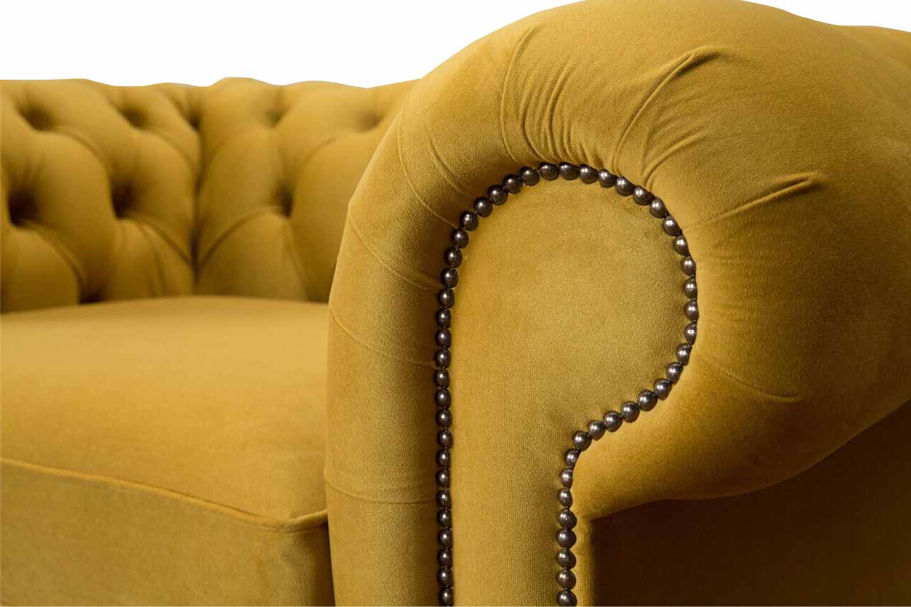 Krēsls dizains Relaksējošs Audums Lounge Luksuss Dzeltenais Polster Sēdēt Chesterfield
