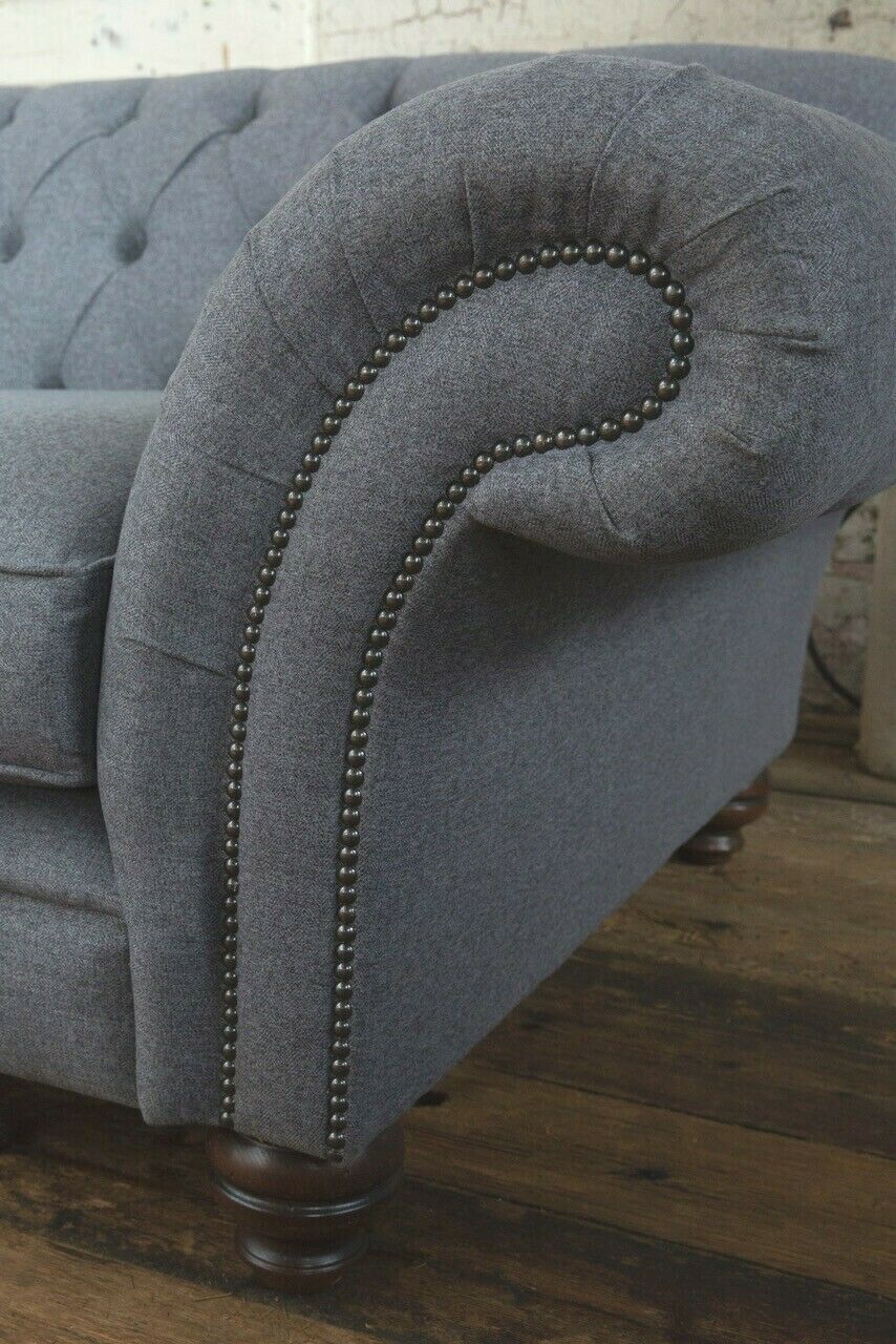 Mūsdienīga Chesterfield dīvāna 4-vietīga spanos samta ādas dizaina pelēka dīvāna.