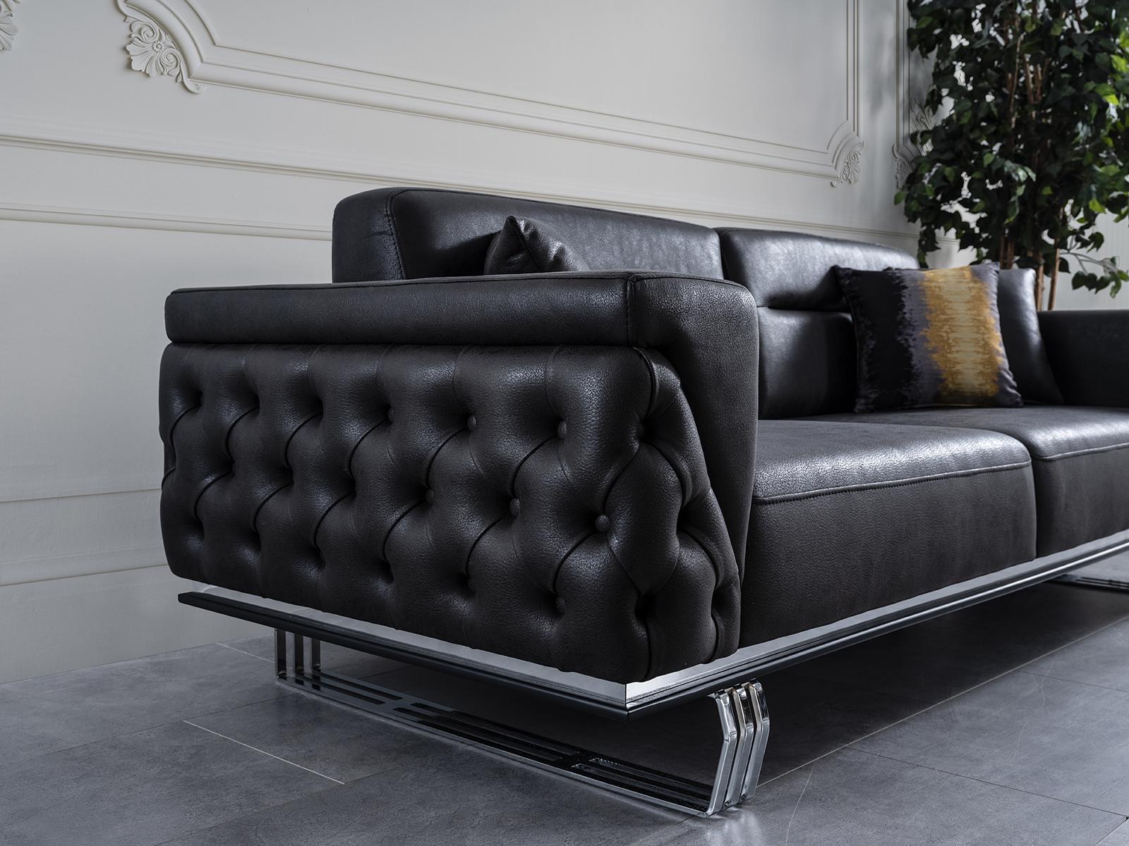 Pieejama citās krāsās pēc pieprasījuma, šis luksusa dizaina dīvāns ir piemērots gan mājai, gan birojam. Ar sēdvietas augstumu apmēram 44 cm un dziļumu 56 cm, tas nodrošina komfortablu sēdēšanas pieredzi. Lai piešķirtu istabai modernu un stilīgu izskatu, iekārtojiet šo dīvānu kopā ar citiem mūsdienīgiem mēbeļu gabaliem un izbaudiet ērtības un eleganci, ko tas sniedz.