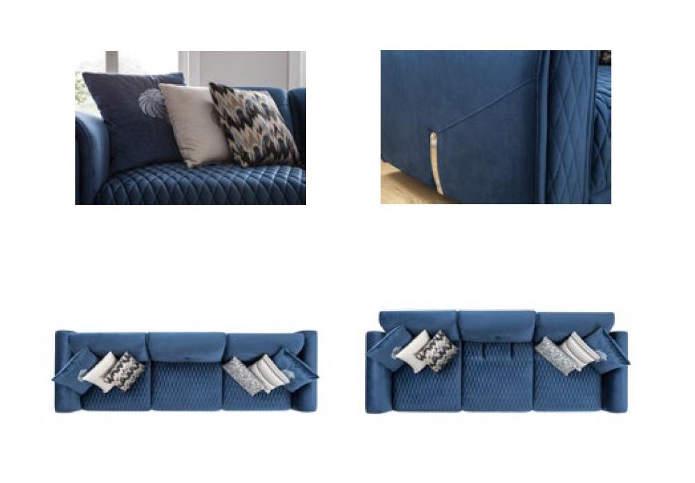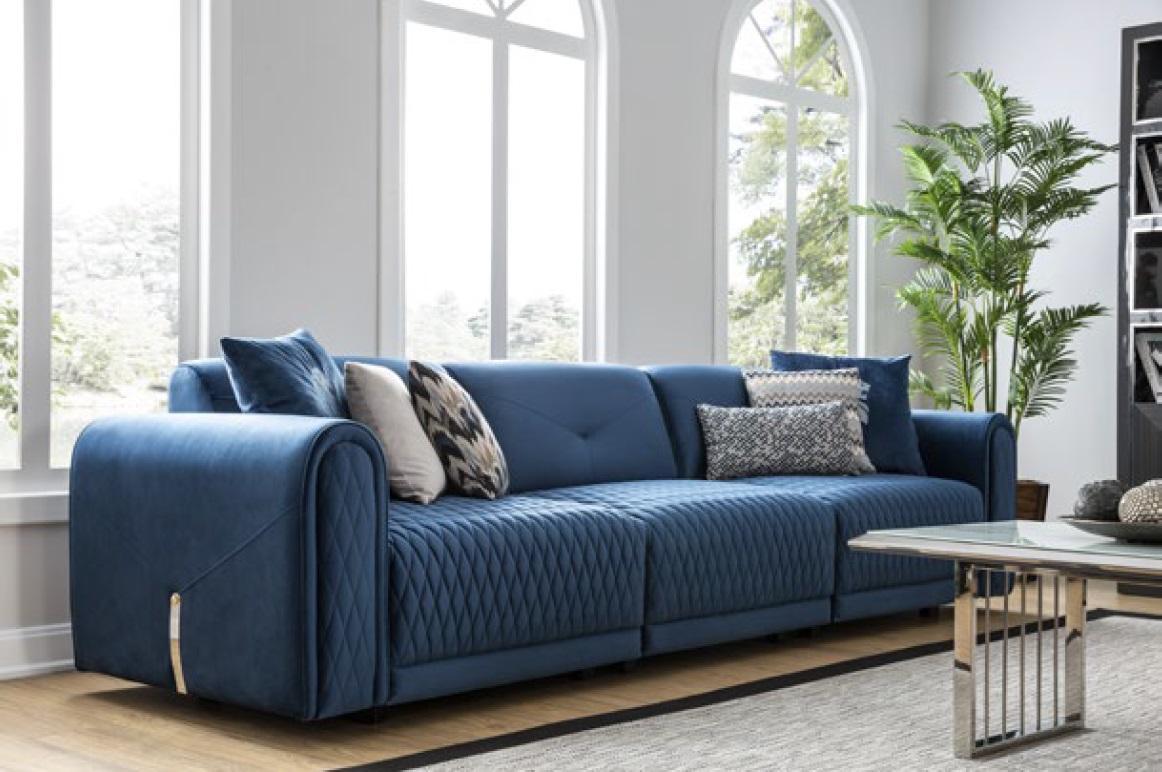 Luksusa dīvāns 4 x vietu dzīvojama telpa Mūsdienīgs dizains Zils Dīvāns Ādas Jauns ir augstas kvalitātes un elegants mēbeļu elements jūsu dzīvojamā telpa. Ar izmēriem apmēram 265 x 99 x 82 cm, šis dīvāns ir lielisks apsēsties un atpūsties. Izgatavots no koka un ādas, tas ir izturīgs un viegli tīrāms, nodrošinot ilgstošu komfortu un stilu jūsu mājās. Krāsa, kas redzama attēlā, piešķir dīvānam eleganci un modernitāti, bet pēc pieprasījuma ir iespējamas citu krāsu izvēles.