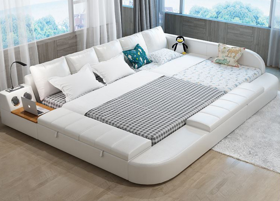 Multifunkcionāls dīvāns gultasvietas xxl liels gultas kastes USB viesnīcas ādas polsteris.