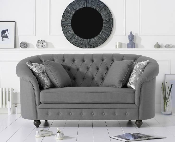 Klasiskā tekstila dīvāns - Pelēkais Chesterfield auduma dīvāns 2-vietīgs Jaunums jvmoebel ®