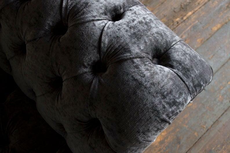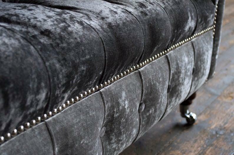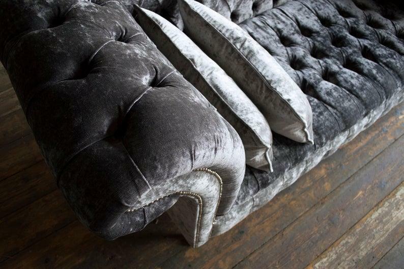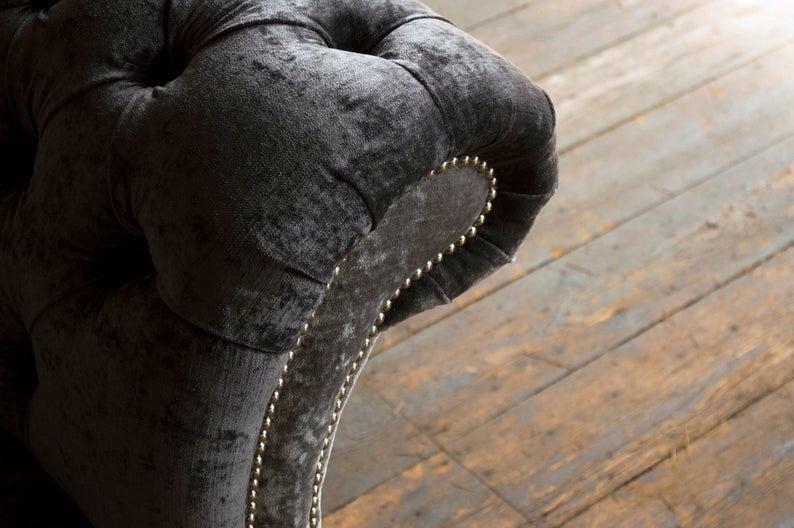 Pelēks Česterfīldas dīvāns ar polsterējumu 3-vietīgas dīvāna sēdvietas komplekts dīvānsiem Jaunums ir izcils mēbeļu gabals, kas iederēsies jebkurā mājas interjerā. Ar elegantu un stilīgu dizainu, šis dīvāns piedāvā ne tikai augstu komfortu, bet arī eleganci un stilu telpā. Izmēri, tai skaitā apm. 220 cm garš, 90 cm augsts un 74 cm dziļš, nodrošina plašu sēdvietu ar dziļumu apm. 60 cm un augstumu apm. 44 cm, ļaujot pilnvērtīgi atpūsties un baudīt brīvdienu mirkļus.