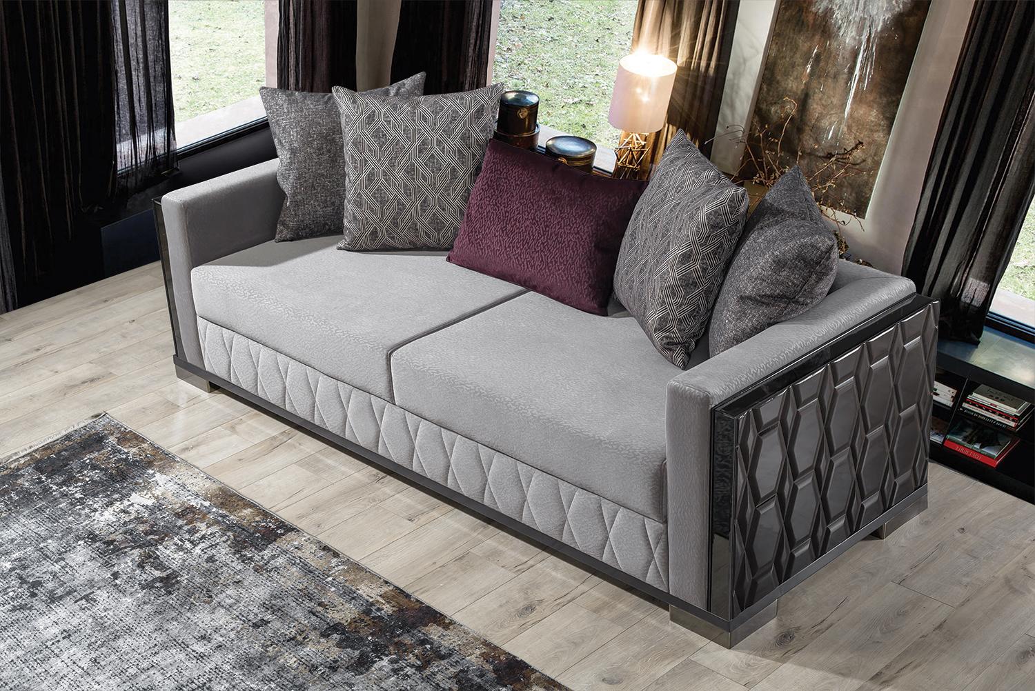 Šis Luxus dīvāns ar trim sēdvietām ir ne tikai elegantas un modernas iekārtas simbols, bet arī ērts un praktisks mājām. Ar 3 sēdvietām tas ir ideāls mēbelējums dzīvojamā istabā, nodrošinot gan komfortu, gan stilu. Ar izmēriem apmēram 233 x 90 x 68 cm, šis dīvāns ir piemērots gan lielām, gan mazām telpām, nodrošinot vietu ģimenes vai draugu sapulcēm.