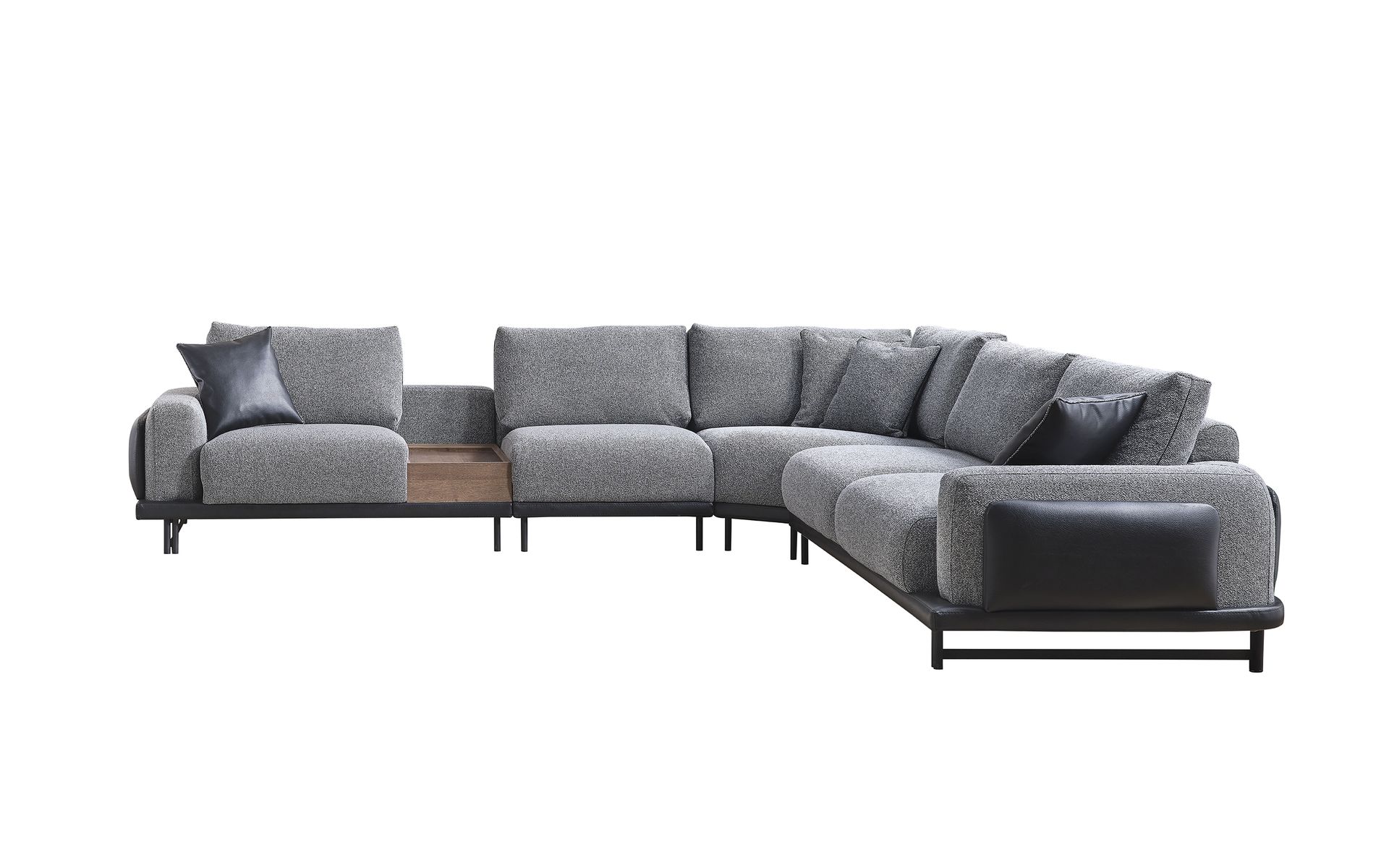 Pelēkais dzīvojamo istabu komplekts ar stūrveida dīvānu ir ideāli piemērots gan atpūtai un relaksēšanai pēc garas dienas, gan arī sociālajiem pasākumiem ar draugiem un ģimeni. Stūra dīvānam L formā ir plašas sēdvietas, kas ļaus viesiem ērti izvietoties, savukārt mīkstā krēsla un pufi nodrošinās papildus komfortu un mājīgumu. Šis komplekts ir izgatavots no augstas kvalitātes kokmateriāliem, tekstila un metāla, nodrošinot ilgmūžību un izcilu izskatu jūsu interjerā.