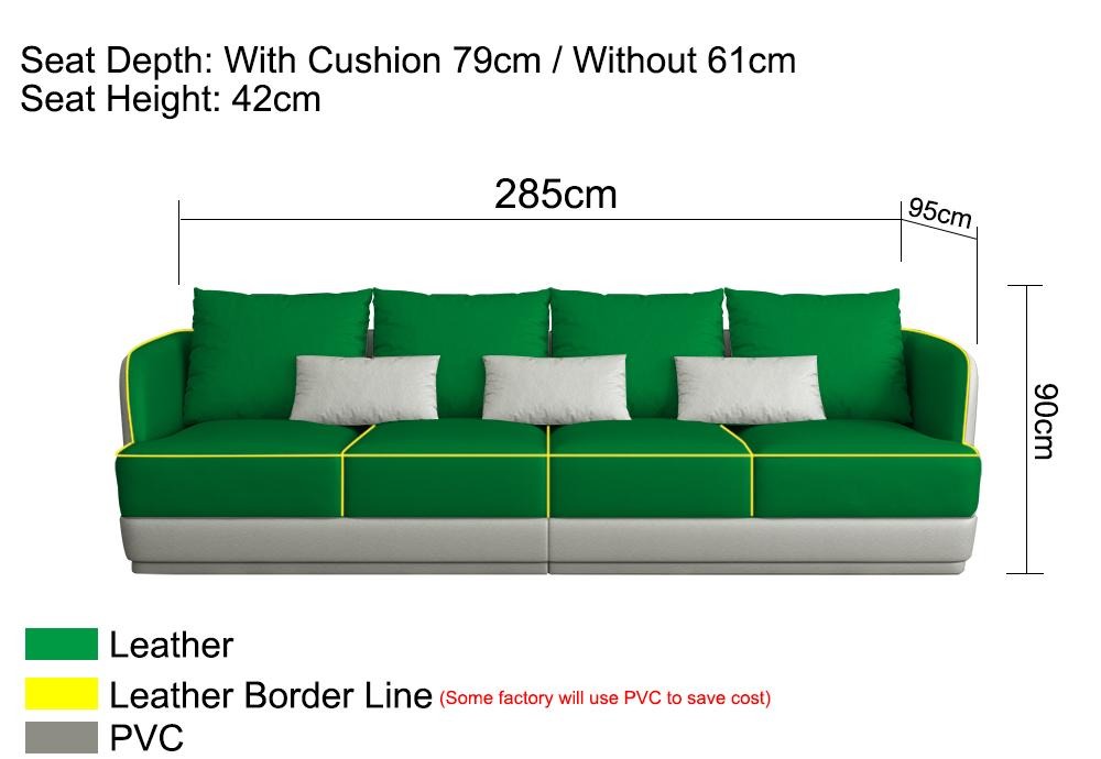 Šis Luksusa jumts dizains dīvāns ir moderns un izcilības piemērs mājai vai birojam. Ar trīs atvērtām vietām, tas sniedz maksimālu komfortu un izstaro luksusa eleganci. Ar augstumu apmēram 90 cm un platumu apmēram 95 cm, šis dīvāns ir lielisks gan sēdēšanai, gan atpūtai. Sēdvietu augstums apmēram 42 cm un dziļums apmēram 79-61 cm nodrošina ideālu atbalstu un komfortu. Materiāls – premium ādas šķiedras audums (70% āda / 30% poliesters) - garantē augstu kvalitāti un izturību, nodrošinot ilglaicīgu lietošanu.