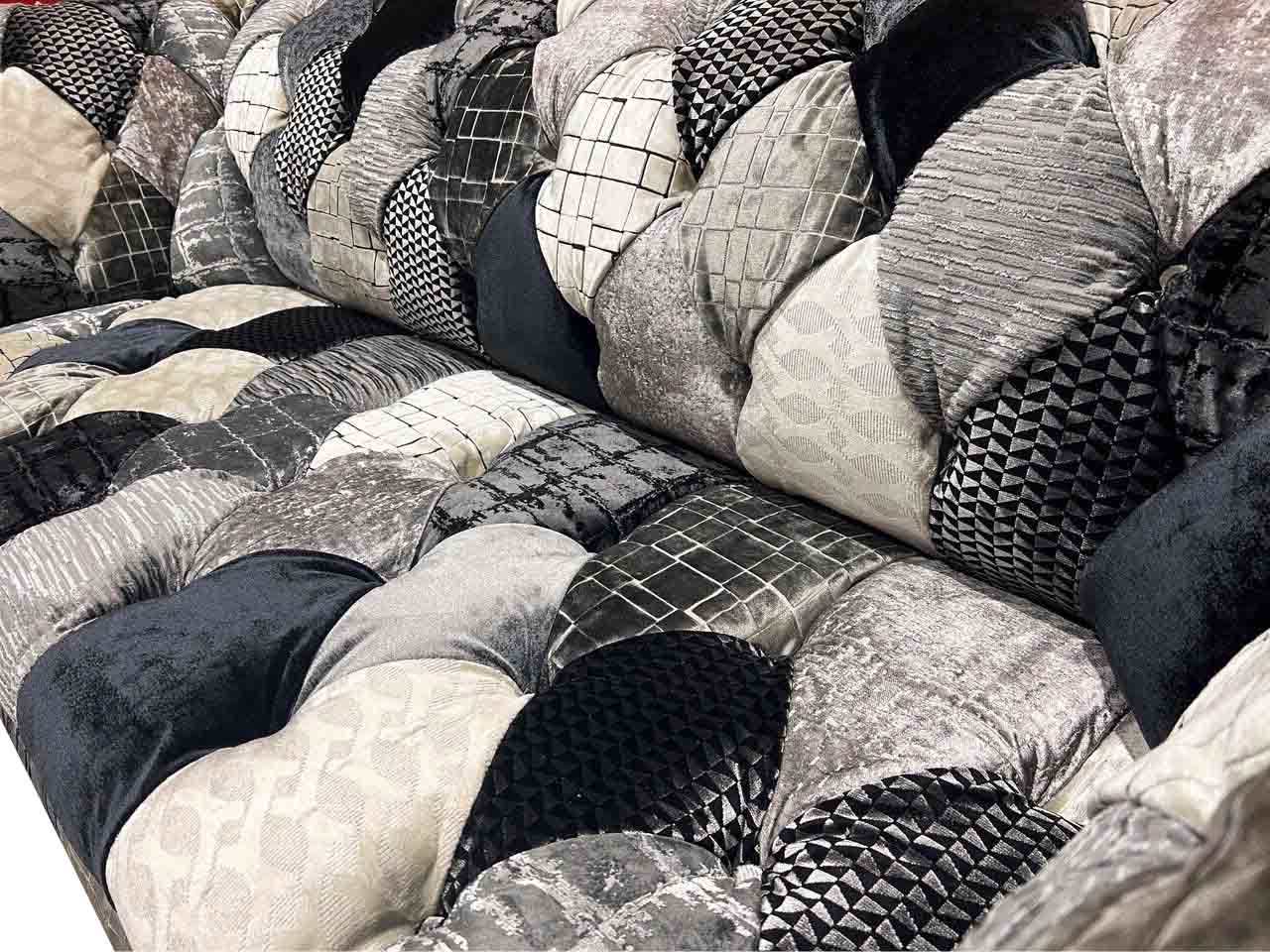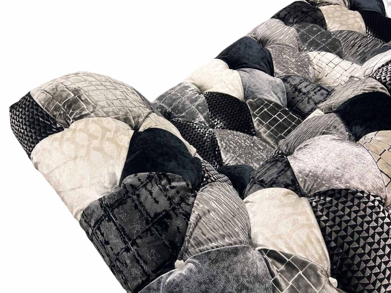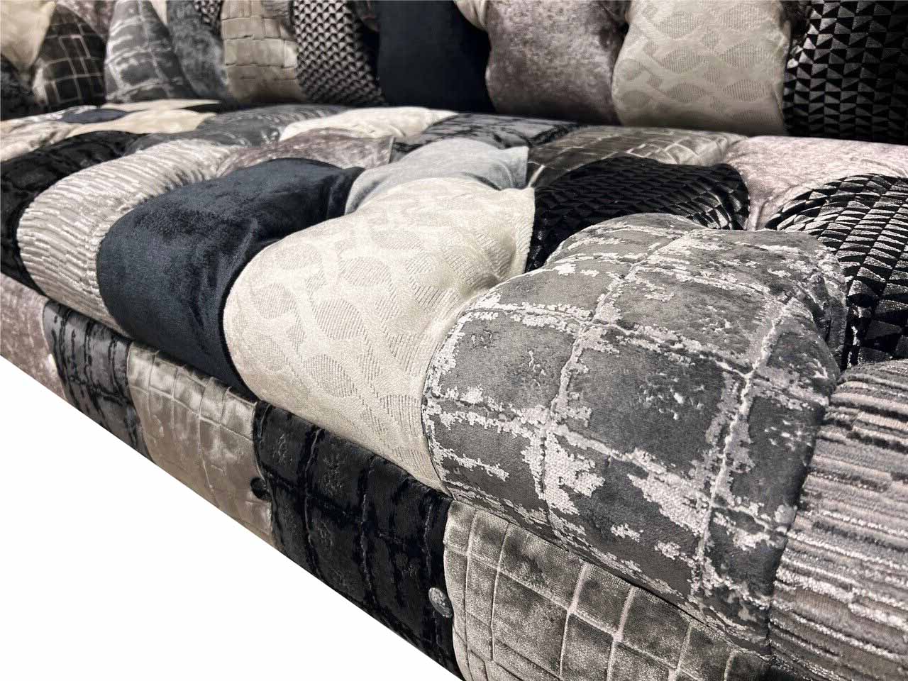 Luksusa velveta dīvāns Česterfilda stilā ar krāsainiem rūtiem