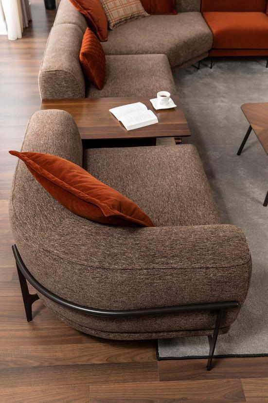 Šis stūra dīvāns ir izgatavots, ņemot vērā jūsu ērtību un dizaina priekšrocības. Krāsas izvēle kā attēlā vai citās krāsu opcijās pēc jūsu individuālām vēlmēm. Materiāls - koks un audums, nodrošina gan estētisku, gan funkcionālu aspektu, padarot šo mēbeli piemērotu dažādām interjera stila kombinācijām. Vai nu iekārtojot jaunu dzīvojamās istabas platību vai atjaunojot esošo telpu, šis stūra dīvāns būs izcilā izvēle, lai radītu mājīgu un mūsdienīgu atmosfēru. Moderns stūra dīvāns L formas kokvilnas mēbeles ar nerūsējošā tērauda sastāvdaļām jauns dzīvojamais istabas mēbeles.