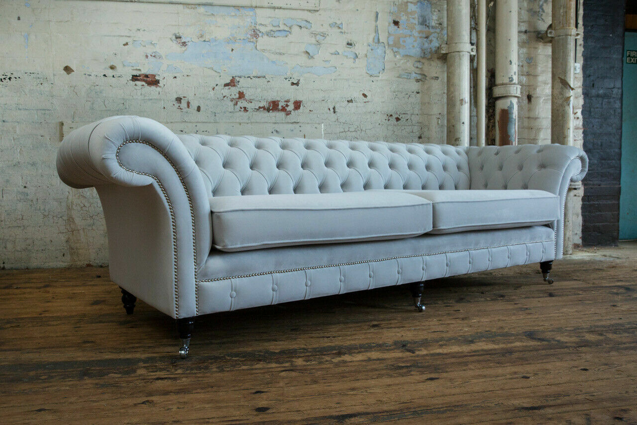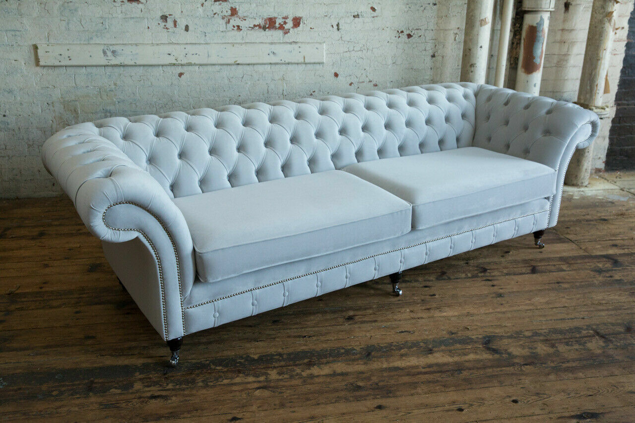 Skaista un moderna Pelēka Chesterfield 4 vietu mīkstais dīvāns, kas piešķirs jūsu telpai eleganci un komfortu. Dīvāns ir izgatavots no augstas kvalitātes Samta tekstila auduma, kas nodrošina ne tikai stilu, bet arī ērtības. Ar saviem izmēriem - apm. 265 cm garš, 79 cm augsts un 98 cm dziļš - tas ir lielisks papildinājums jūsu dzīvojamajai istabai vai viesistabai. Sēdvietas augstums ir apm. 42 cm un dziļums - apm. 64 cm, nodrošinot ērtu un relaksējošu sēdus pozīciju.