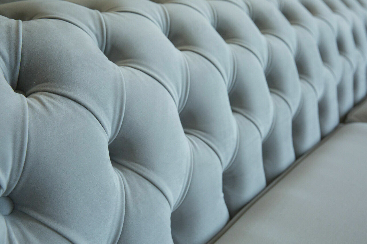 Pelēks Chesterfield 4 vietu mīkstais dīvāns Moderns stils audekls Samta tekstila audums dīvāns