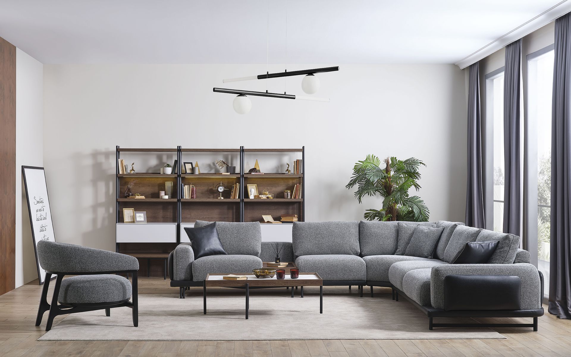 Otrais pirktuve dod jums iespēju ekspresēt savu radošumu un stilu, iegremdējot šo eleganto komplektu savā dzīvojamajā istabā. Stūra dīvāns un krēsls nodrošina komfortablu sēdēšanu un pievieno modernu un mājīgu pieskārienu jebkurā interjerā. Izmantojot šo komplektu, varēsiet baudīt kvalitatīvas atpūtas brīžus, lasot grāmatu, skatoties filmas vai tikai atpūšoties pēc garas dienas. Pelēks polsterēts stūra dīvāns ar dizainera tekstila krēslu ir īsta rotā jebkuru mājvietu, padarot to par elegantu un komfortablu vietu, kur baudīt dzīvi.