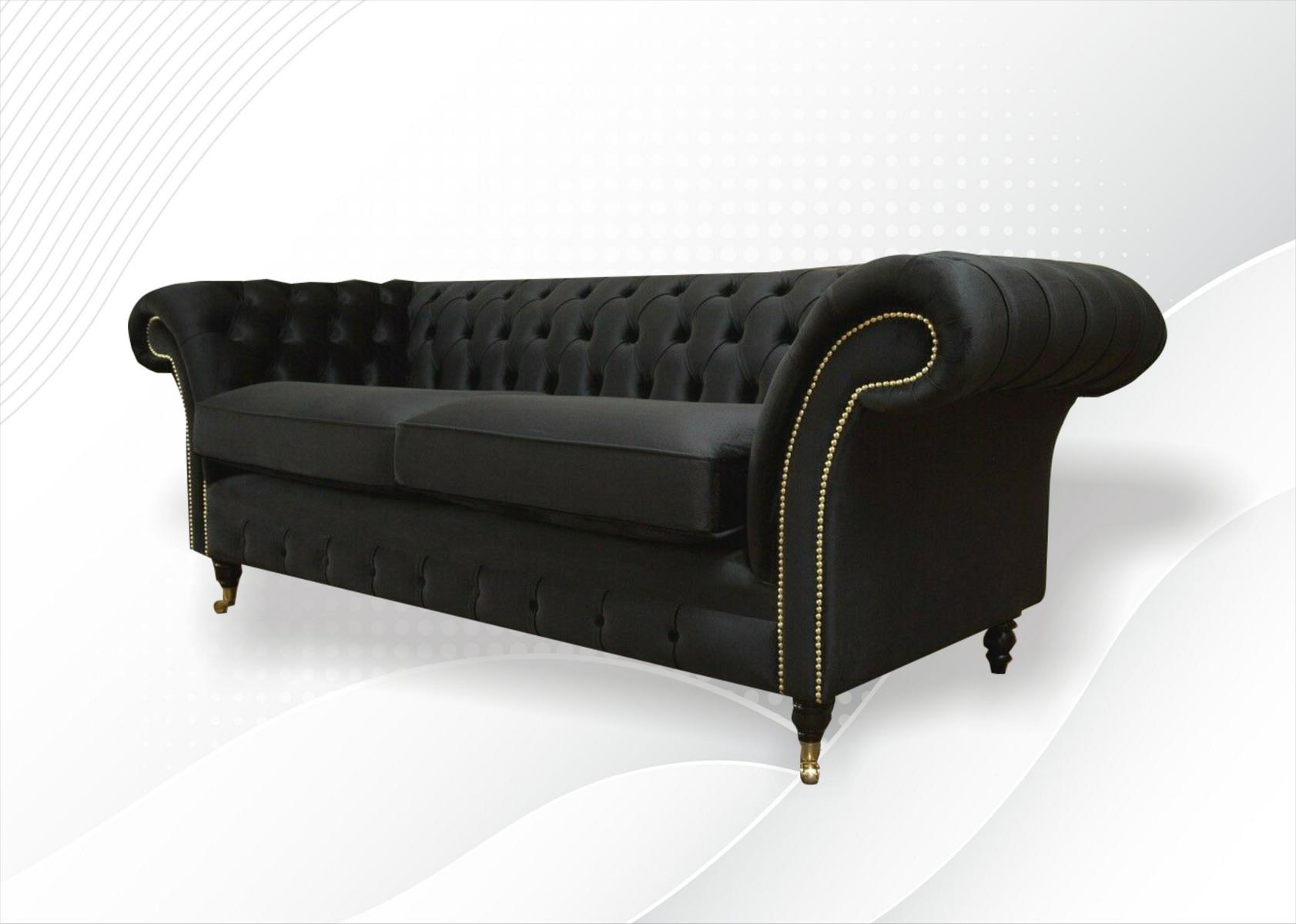Chesterfield Dīvāns Polster Sofa Klasiskais Tekstils Melns Dīvāns 3-vietīgs