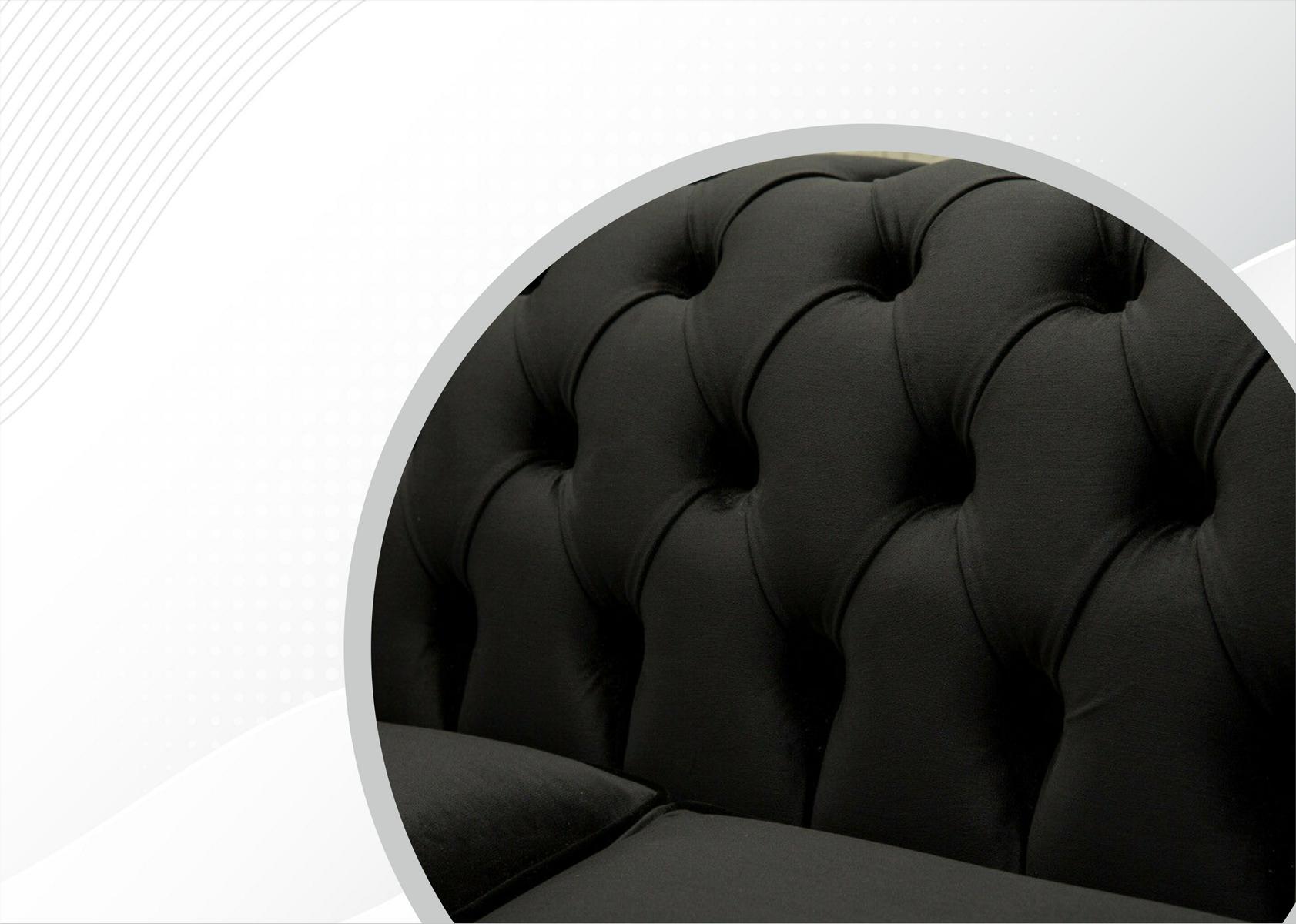 Chesterfield Dīvāns Polster Sofa Klasiskais Tekstils Melns Dīvāns 3-vietīgs ir elegants un izsmalcināts dīvāns, kas radīts, lai nodrošinātu maksimālu komfortu un stilu jūsu mājas interjeram. Ar 3-vietīgu dizainu un augstu kvalitāti, šis dīvāns ir ideāls gan relaksējošiem brīžiem, gan viesu uzņemšanai. Ar tā izmēriem apmēram 225 cm garumā, 79 cm augstumā un 98 cm dziļumā, kā arī sēdvietas dziļumu apmēram 60 cm un augstumu apmēram 44 cm, tas ir lieliska izvēle dzīvojamajai istabai vai guļamistabai, lai nodrošinātu ērtu un elegantu sēdvietu.
