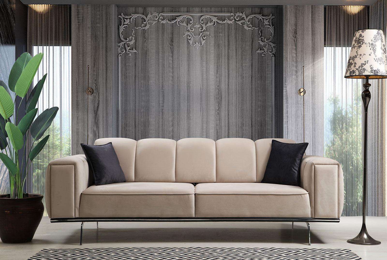 Dīvāns Luksusa audumi 3-vietīgs mīkstāamanta Bežā dīvāns Auduma 3 vietnes.