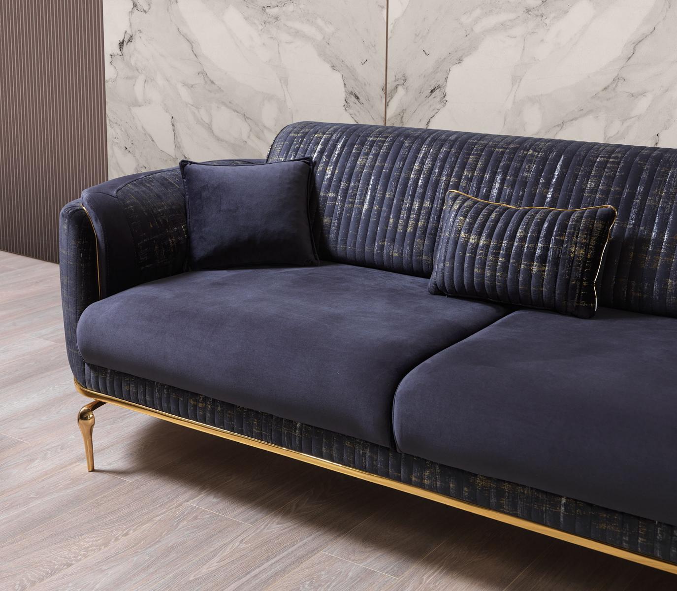 Dzīvojamā istaba, trīsvietīga zila luksusa mēbele, xXL mēbele, dīvāni, dīvāni