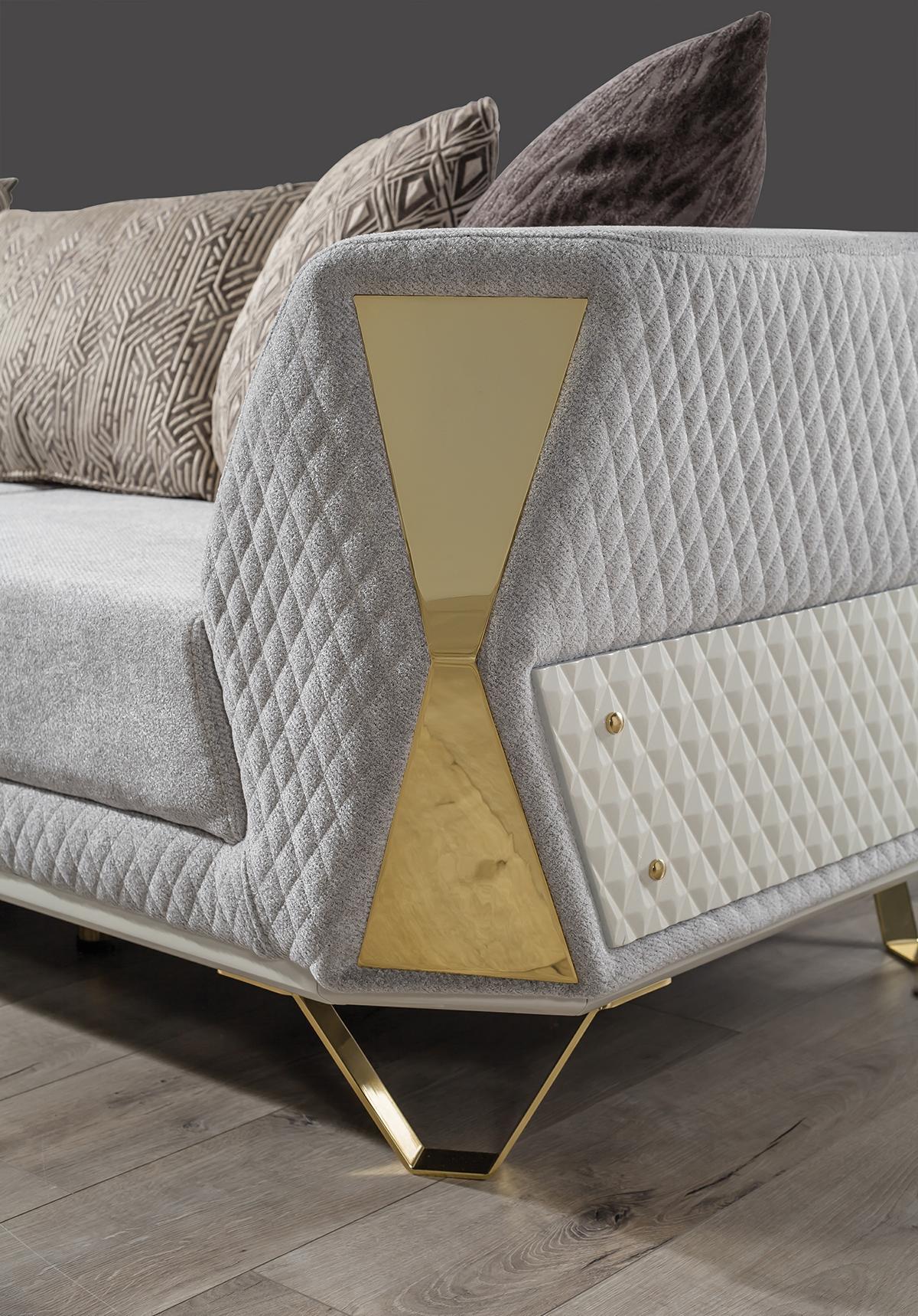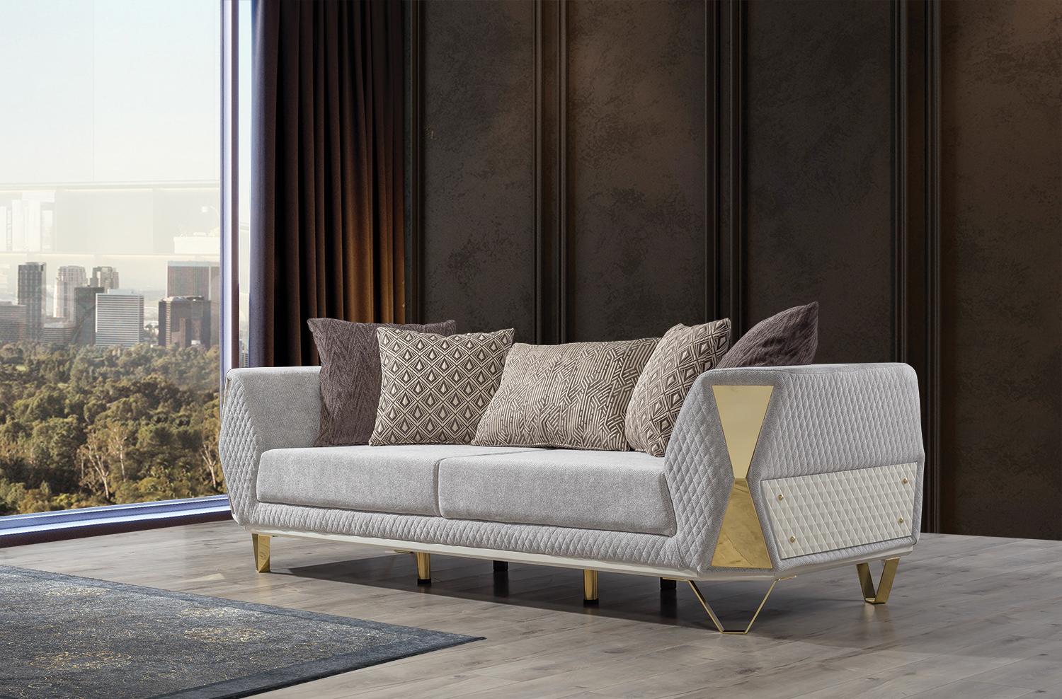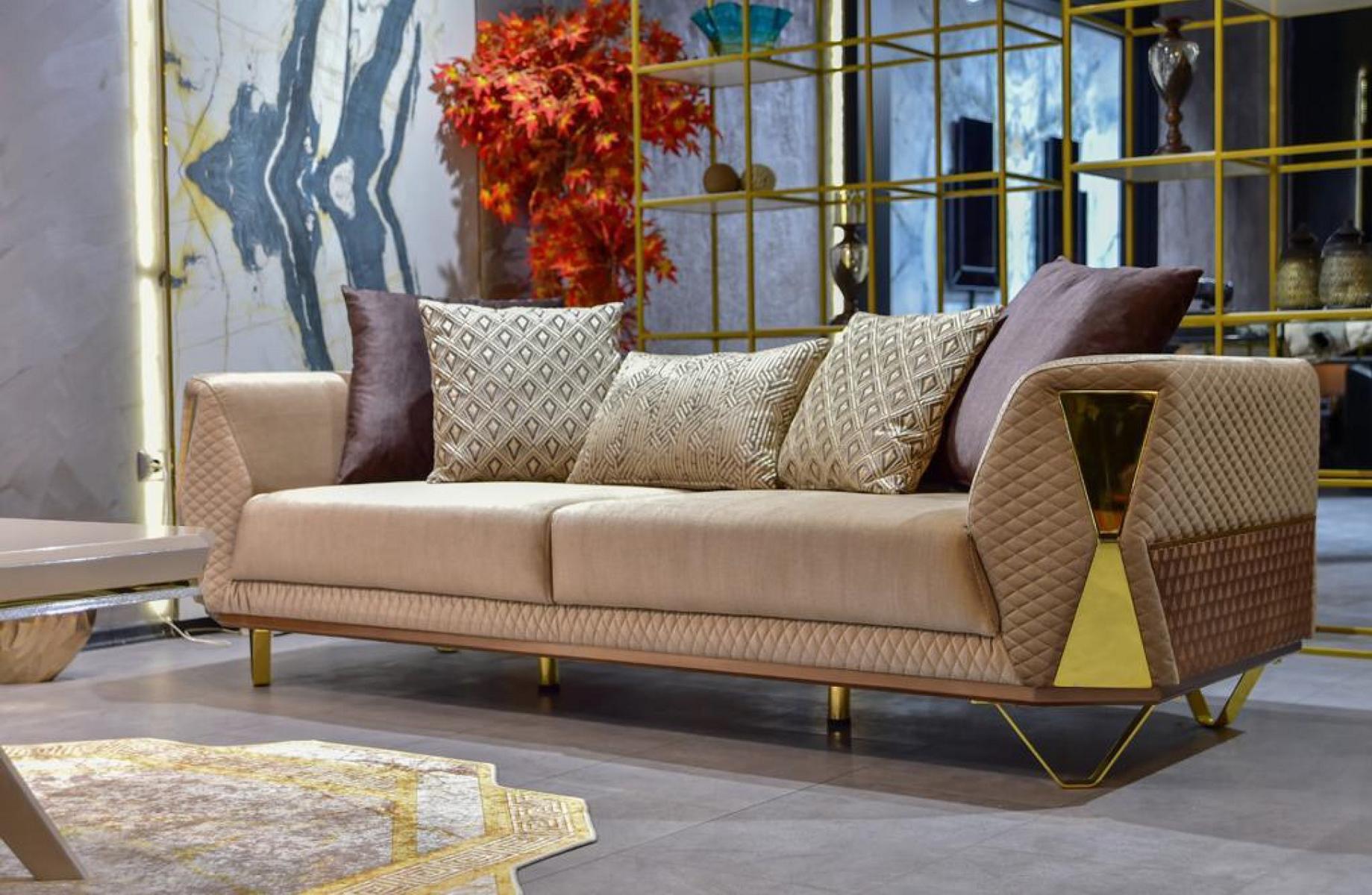 Šis trīs vietu dīvāns ir pieejams kā attēlā redzamajā krāsā, bet iespējamas arī citas krāsas pēc pieprasījuma. Tas izgatavots no metāla ar tekstila pārklājumu, nodrošinot gan ilgmūžību, gan stilīgu izskatu. Izmanto šo dīvānu, lai radītu komfortablu un mājīgu atmosfēru savā dzīvojamajā istabā vai iekārtojot viesistabu, kur viesi var atpūsties un justies ērti.
